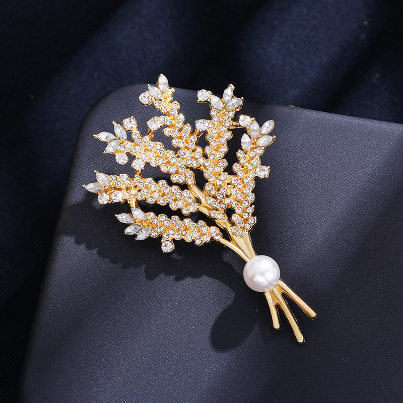 เข็มกลัดหญิง ข้าวสาลีหูโลหะผสม กันแสงสะท้อน เครื่องประดับแฟชั่นสำหรับ Blazers และสูท พร้อมแพ็กเกจของขวัญพิเศษ