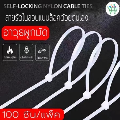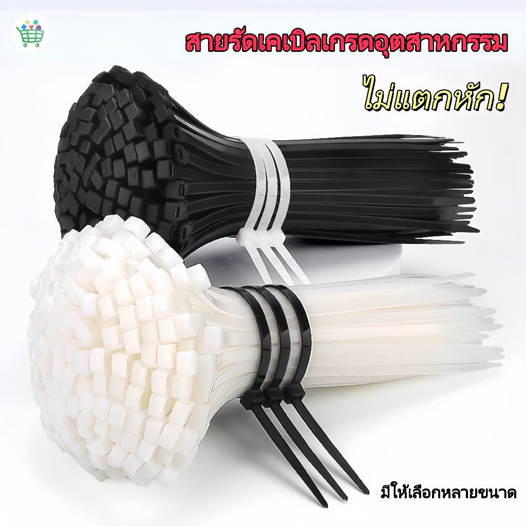 เคเบิ้ลไทร์ Nylon Cable Tie สายรัดเคเบิ้ลไทร์ แพค100เส้น ขาว/ดำ Cable tie หนวดกุ้ง สายรัดพลาสติก