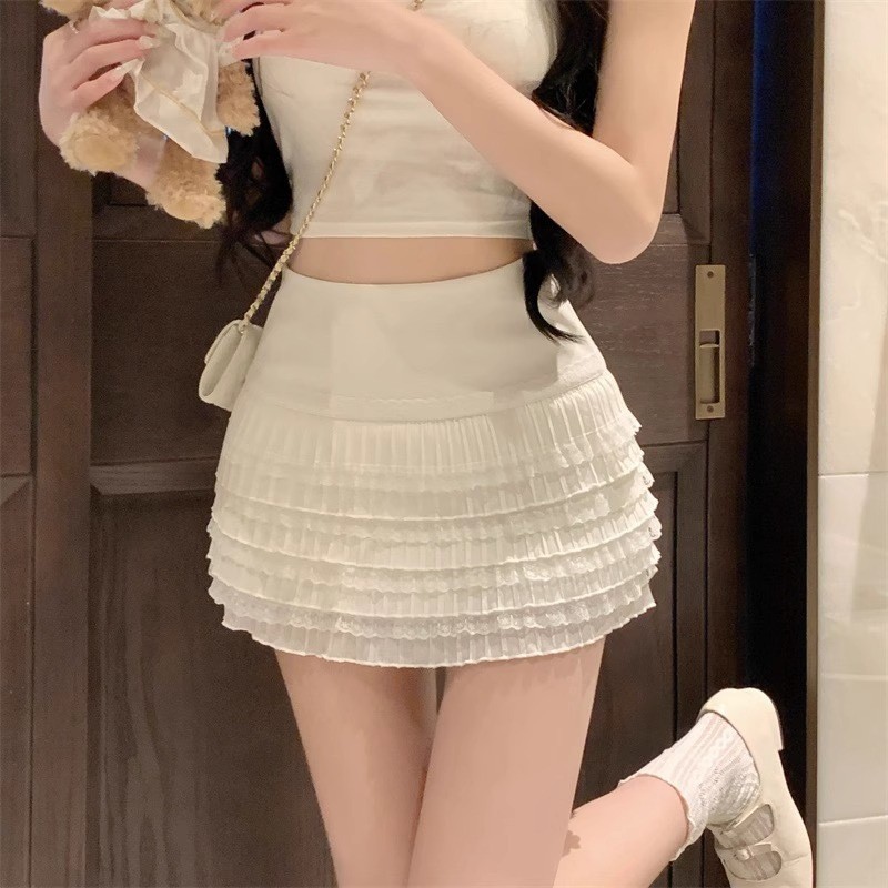2อารมณ์หวานร้อนแรงสาวกระโปรงสั้นจีบลูกไม้หญิงฤดูร้อนออกแบบเพรียวบางพร้อมกางเกงนิรภัยเข้าชุดกระโปรงทรงเอ