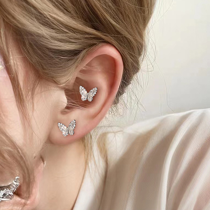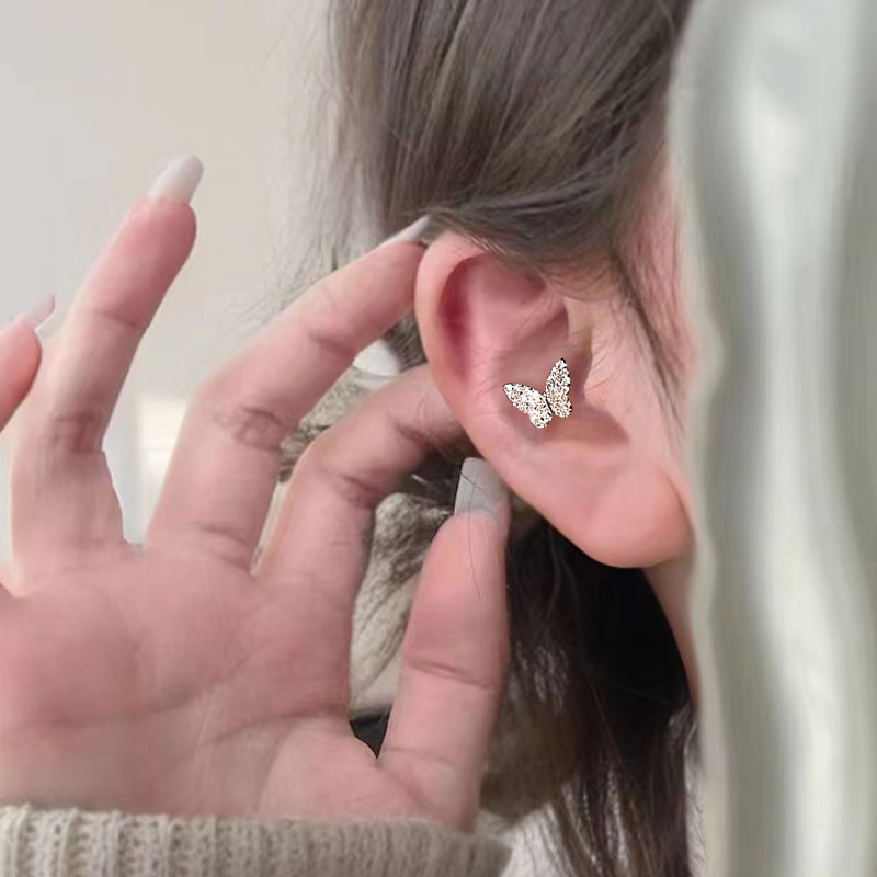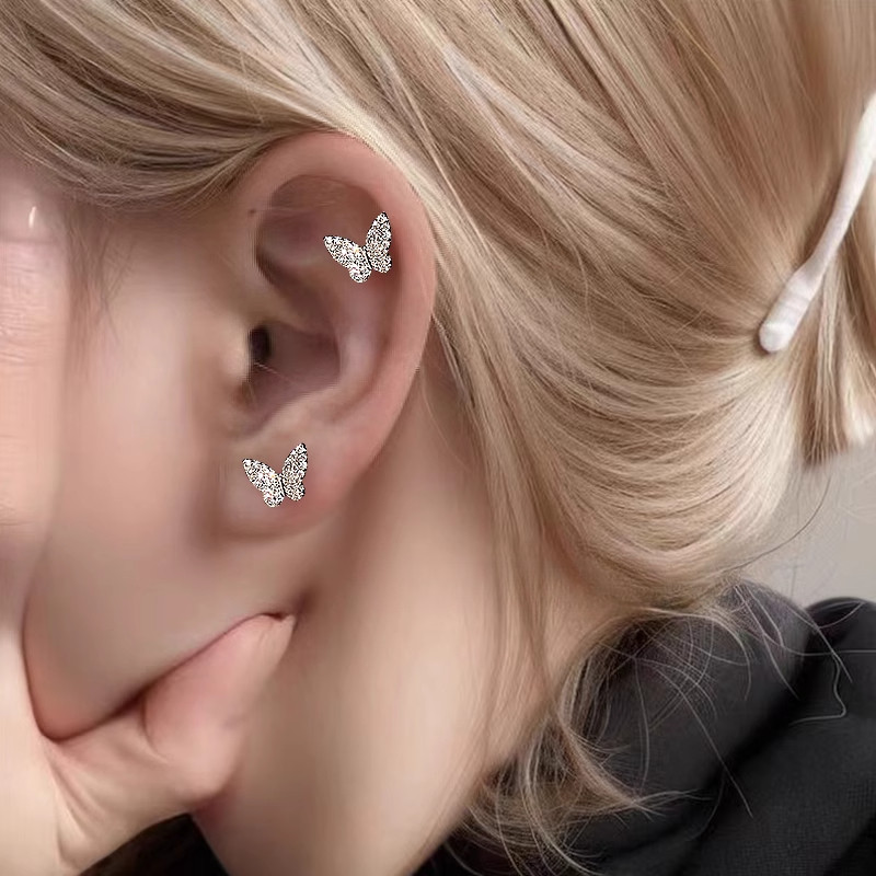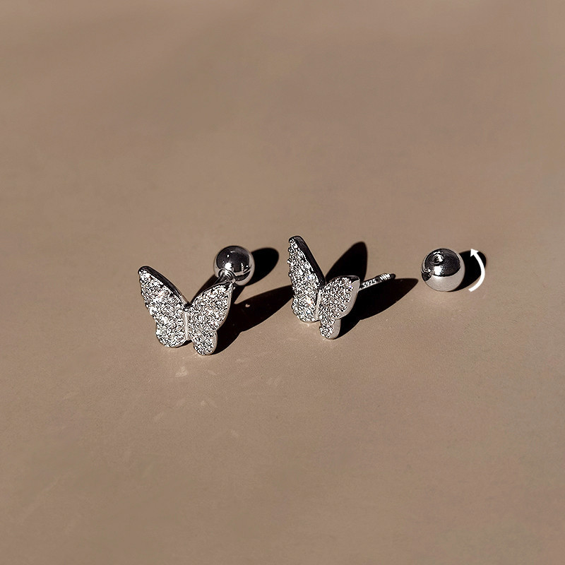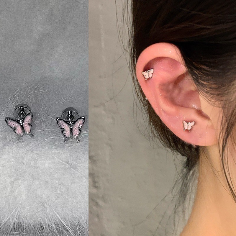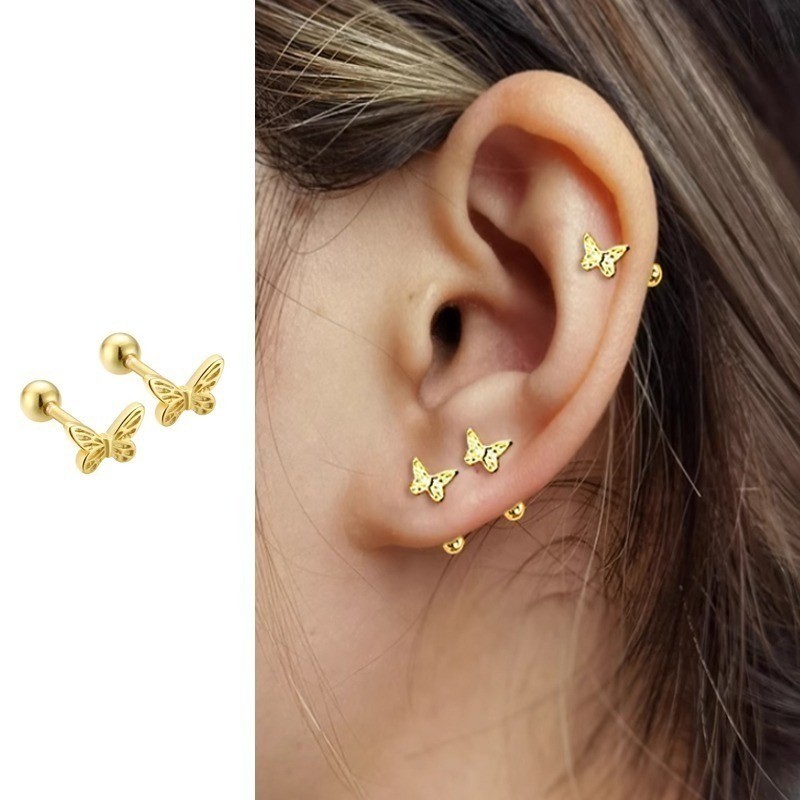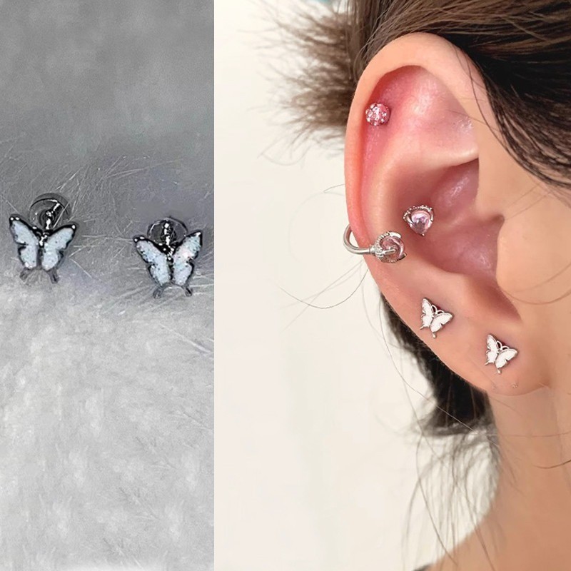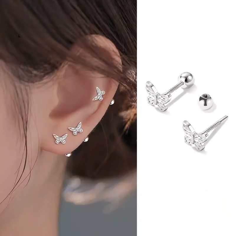 Roselife เกาหลี 1 คู่ผีเสื้อรอบบอลสกรูต่างหูสําหรับผู้หญิงสาวหมั้นหู Studs เครื่องประดับ