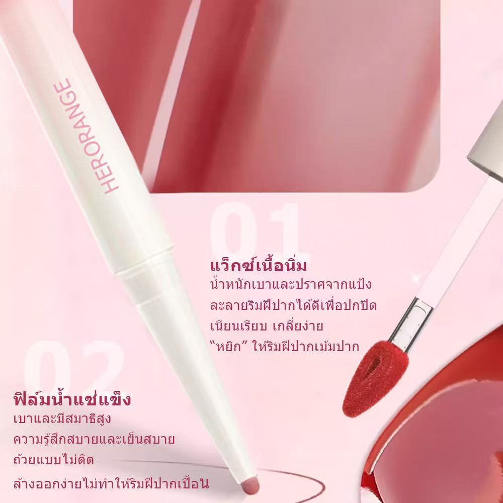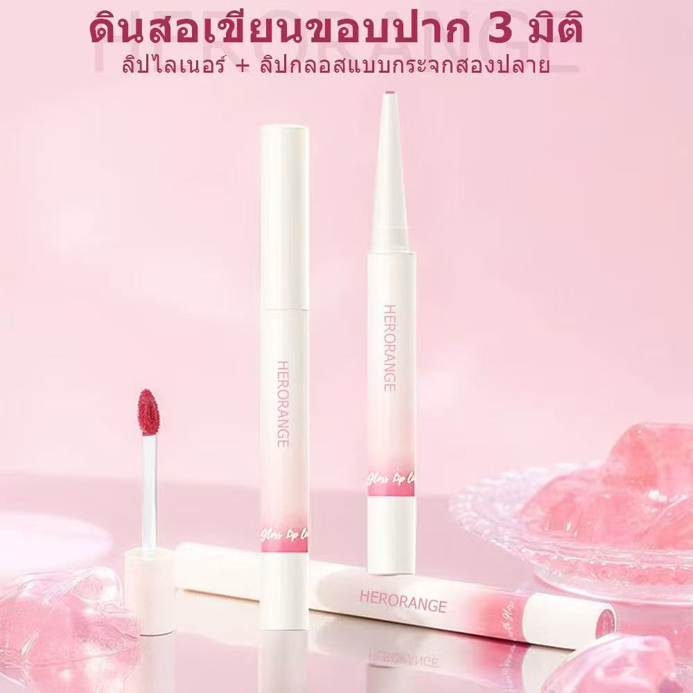 HERORANGE ลิปกลอส ลิปไลเนอร์ 2 in 1 นุ่ม หมอก ลิปไลเนอร์ โครงร่าง ลิปเคลือบกระจก เพิ่มความชุ่มชื้น ติดทนนาน
