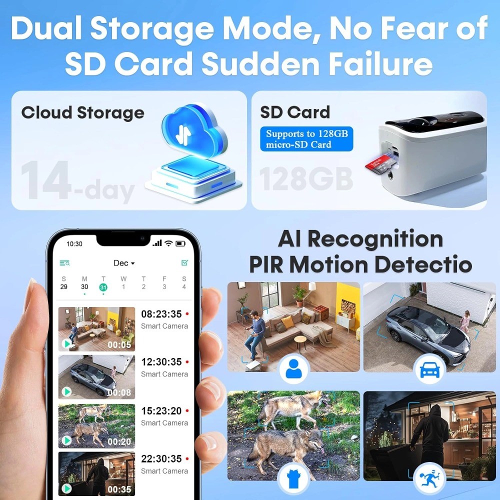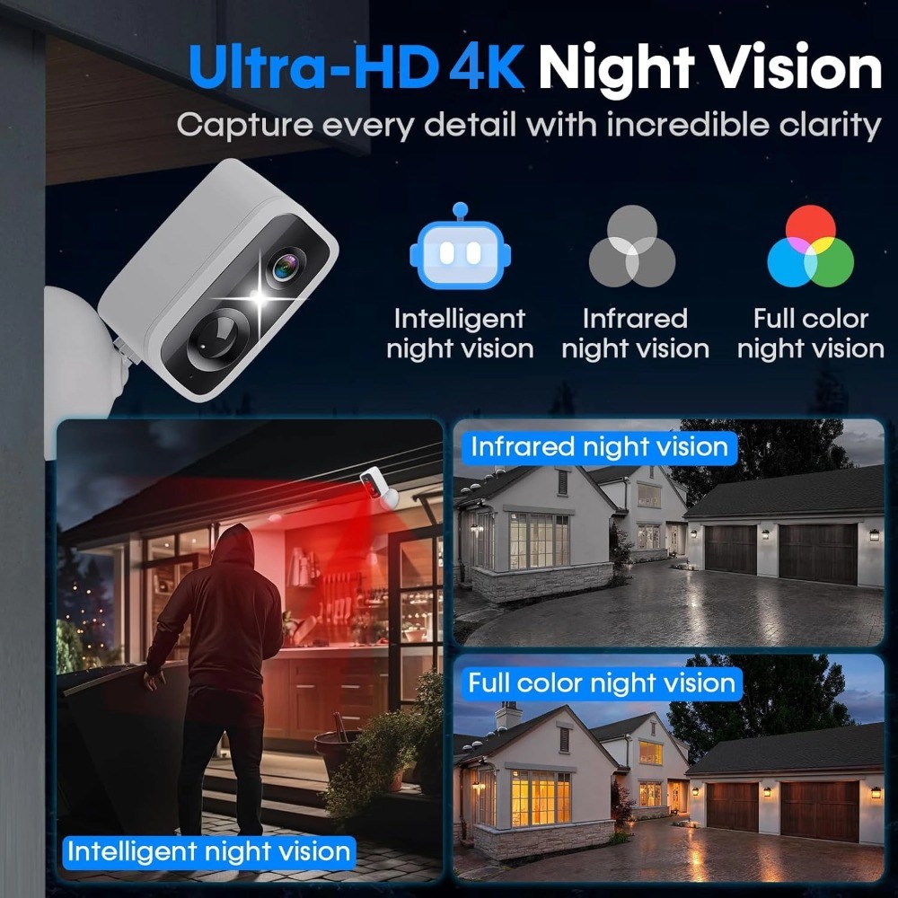 【ความคมชัดระดับ 4K FHD และภาพกลางคืนแบบสี】 กล้องไร้สายสำหรับภายนอกอาคารนี้ให้ภ