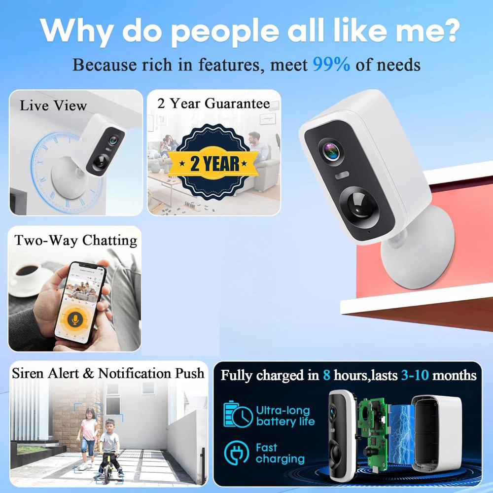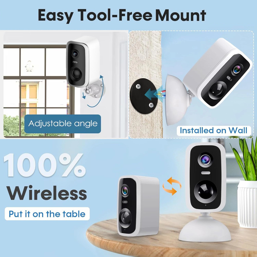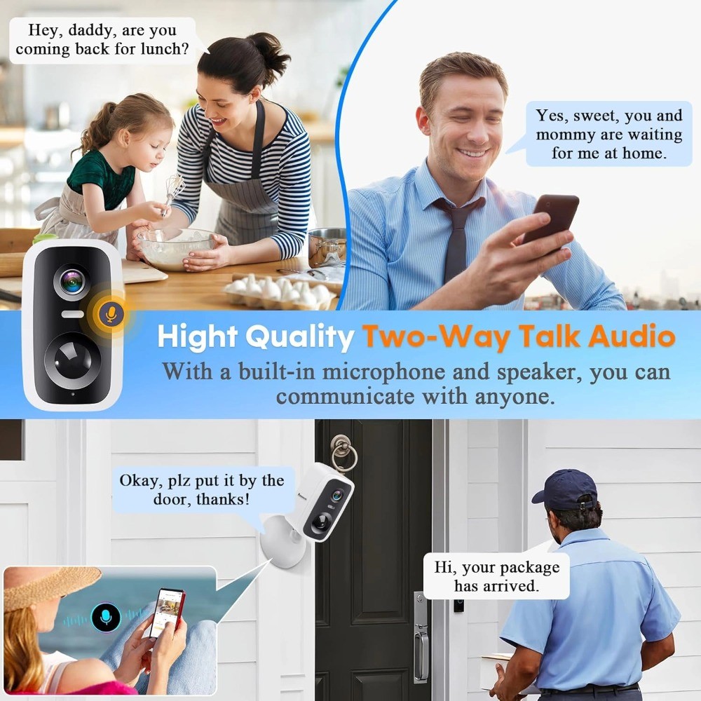 กล้องรักษาความปลอดภัยไร้สาย WiFi 5G สำหรับภายนอกอาคาร 4K ใช้พลังงานจากแบตเตอรี่ กล้องวงจรปิดไร้สาย WiFi ในร่ม มองเห็นภาพกลางคืนแบบสองทาง พร้อมระบบ PIR Motion Talk