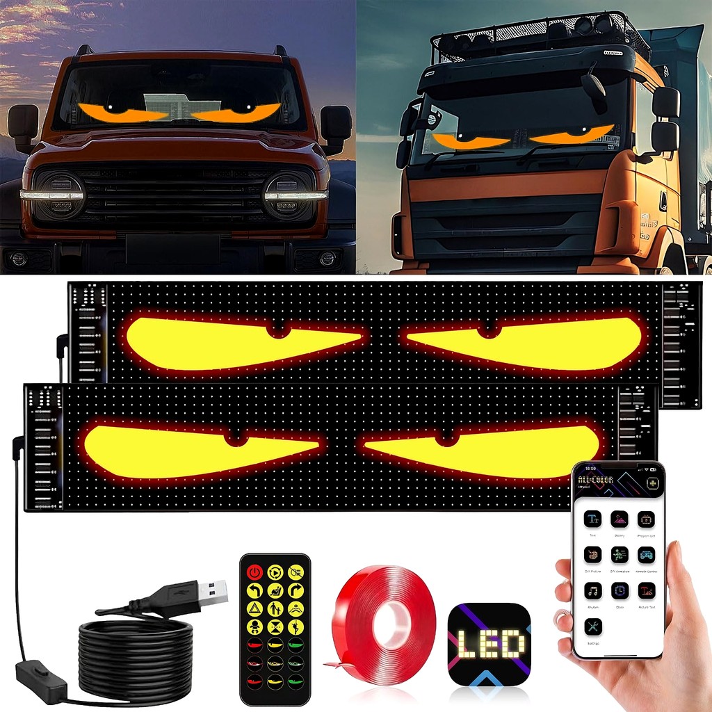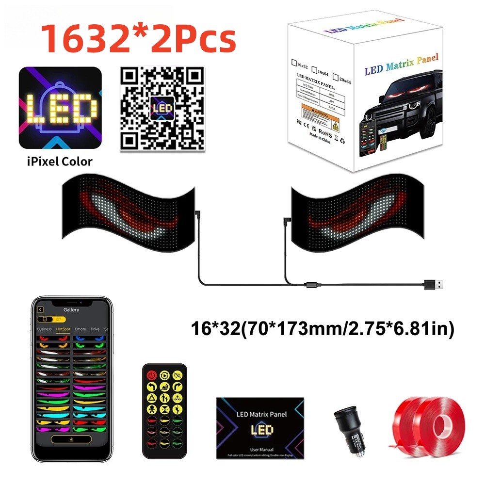 2PCS Devil Eyes APP บลูทูธหน้าจอโฆษณารถยนต์ LED Devil Eyes Light LED จอแสดงผลยืดหยุ่นสีสมาร์ทรถหน้าจอนุ่ม