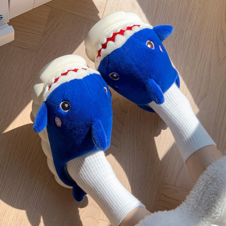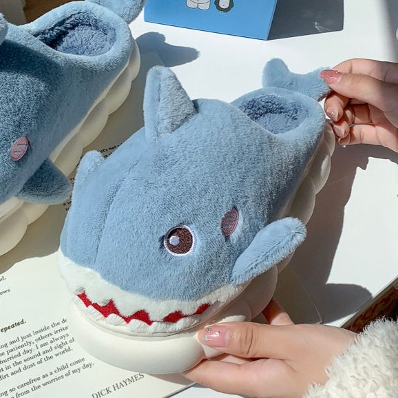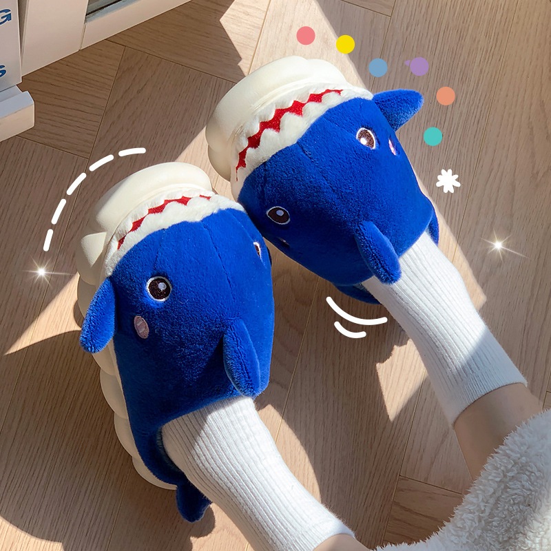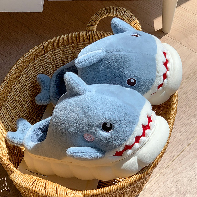 รองเท้าแตะขนนุ่มผ้าฝ้าย ปลาฉลาม