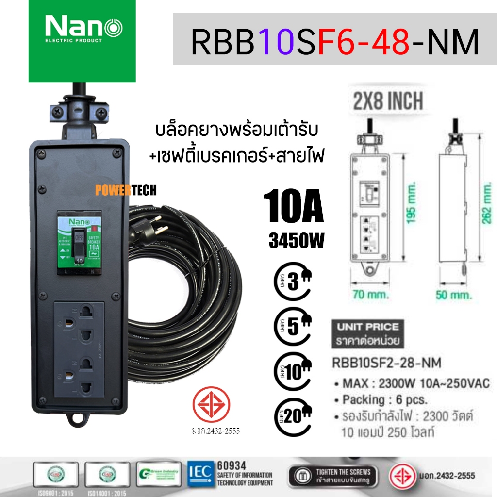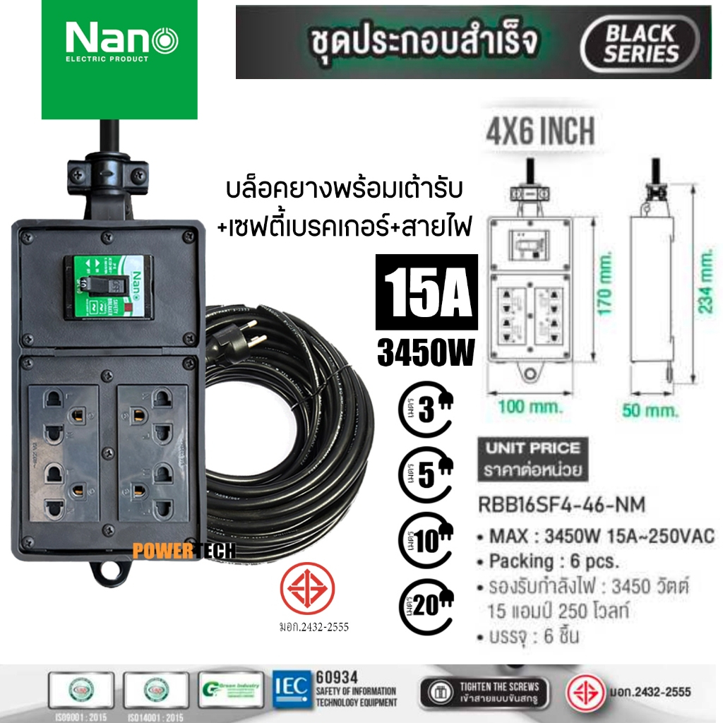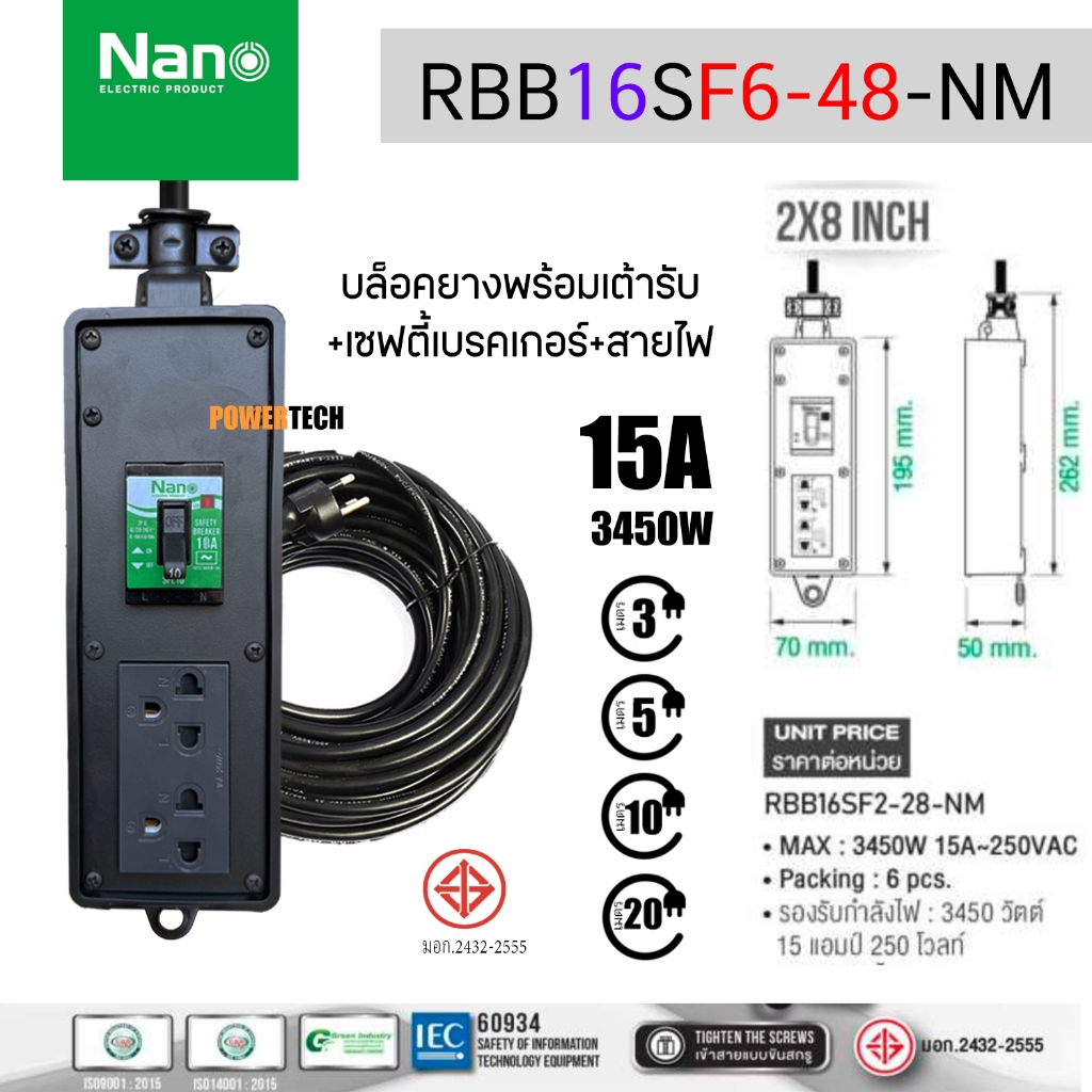 หยิบใส่ตะกร้าบล็อคยาง บ็อคยาง Nano ปลั๊กสนาม พร้อมเต้ารับได้ มี SAFETY BREAKER 15A มีสายไฟ 3ม. 5ม. 10ม. 20ม. RBB16SF2-28-NM ,RBB16S