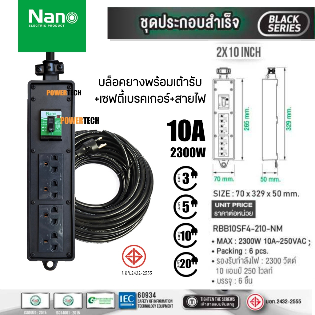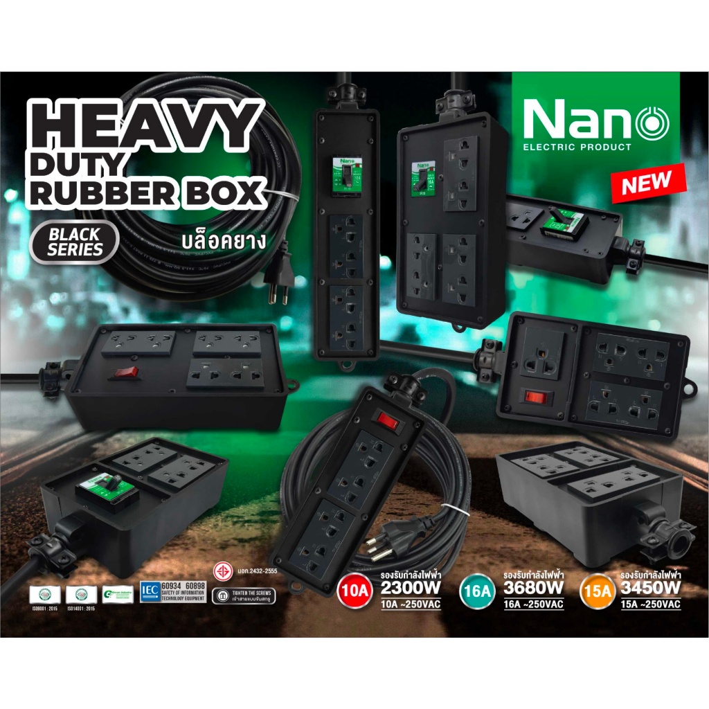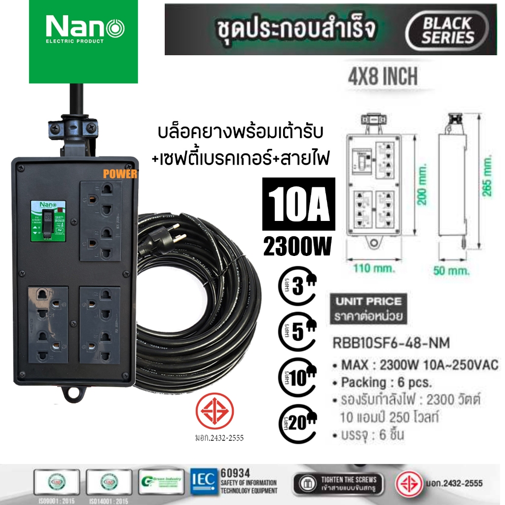 หยิบใส่ตะกร้าบล็อคยาง บ็อคยาง Nano ปลั๊กสนาม พร้อมเต้ารับได้ มี SAFETY BREAKER 15A มีสายไฟ 3ม. 5ม. 10ม. 20ม. RBB16SF2-28-NM ,RBB16S