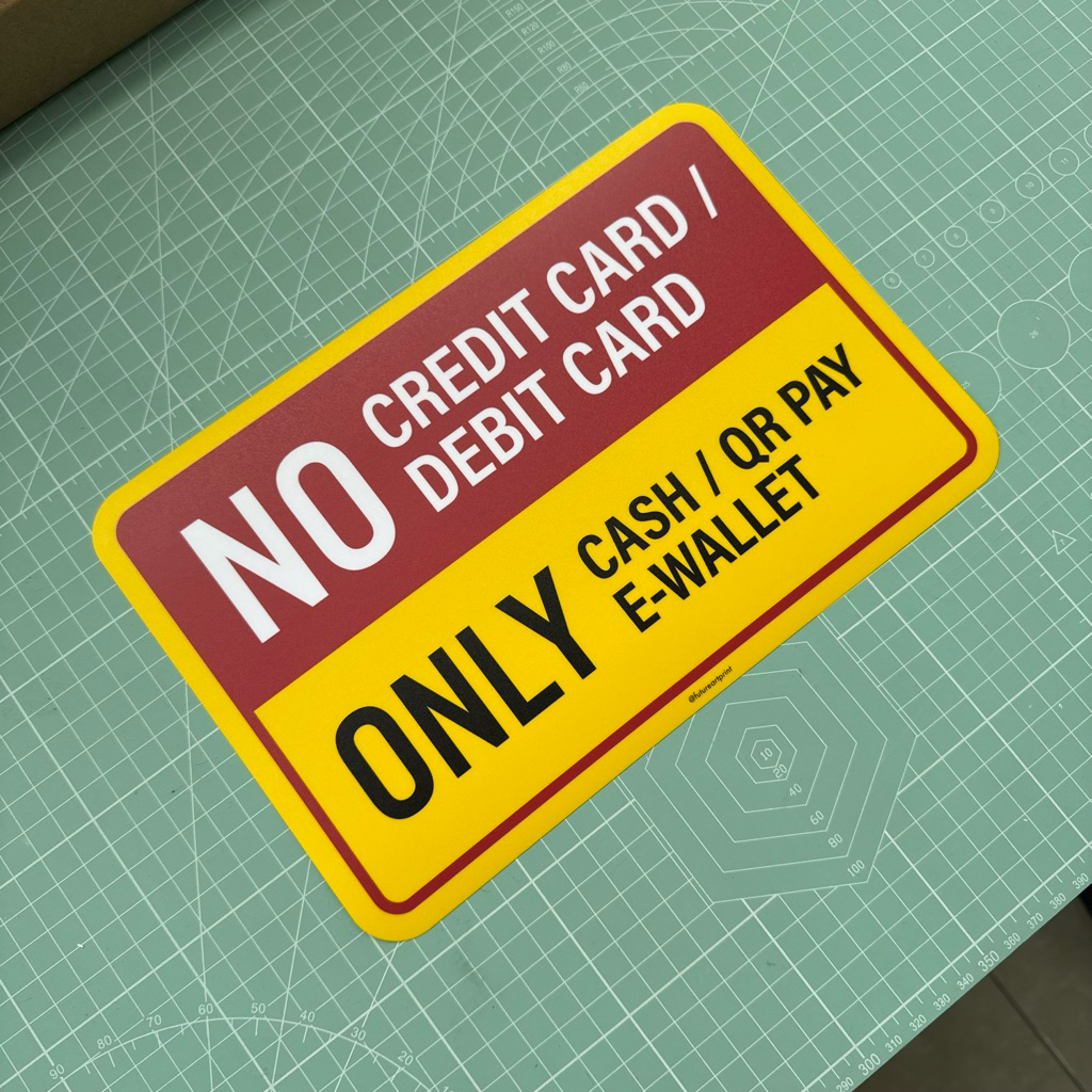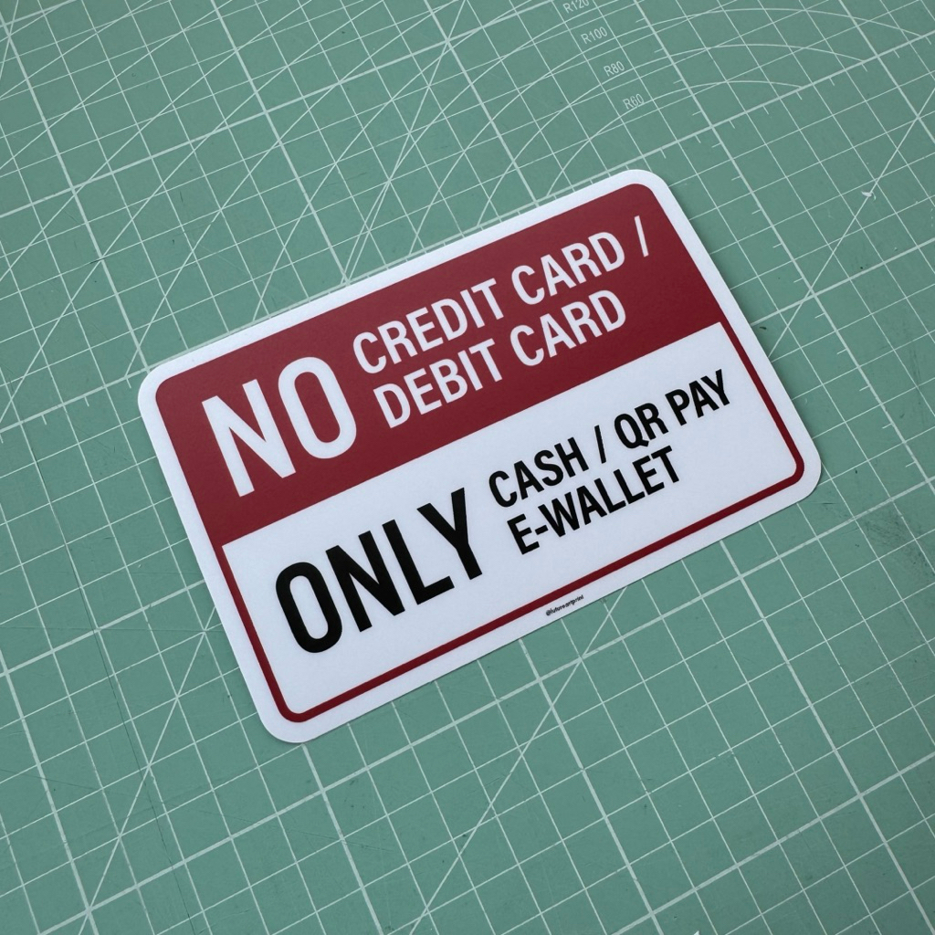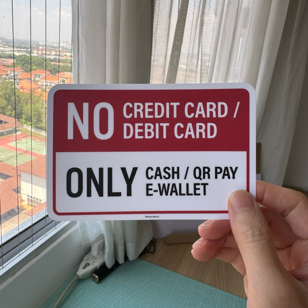 ไม่มีบัตรเครดิตเดบิต ชำระเงินด้วยเงินสด QrPay E-Wallet QR เท่านั้น ป้ายป้ายประกาศป้ายสติกเกอร์. เราไม่ยอมรับ