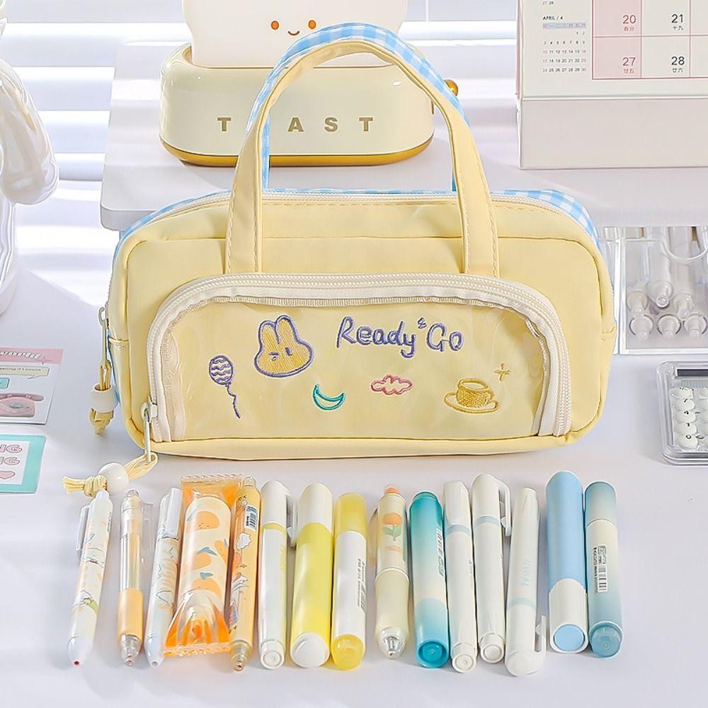 ดอกกุหลาบ ดินสอ , กระเป๋าใส่ปากกาหลายชั้นความจุขนาดใหญ่, กระเป๋าใส่เครื่องเขียนลายสองด้านมือถือแบบพกพาสํานักงานโรงเรียน