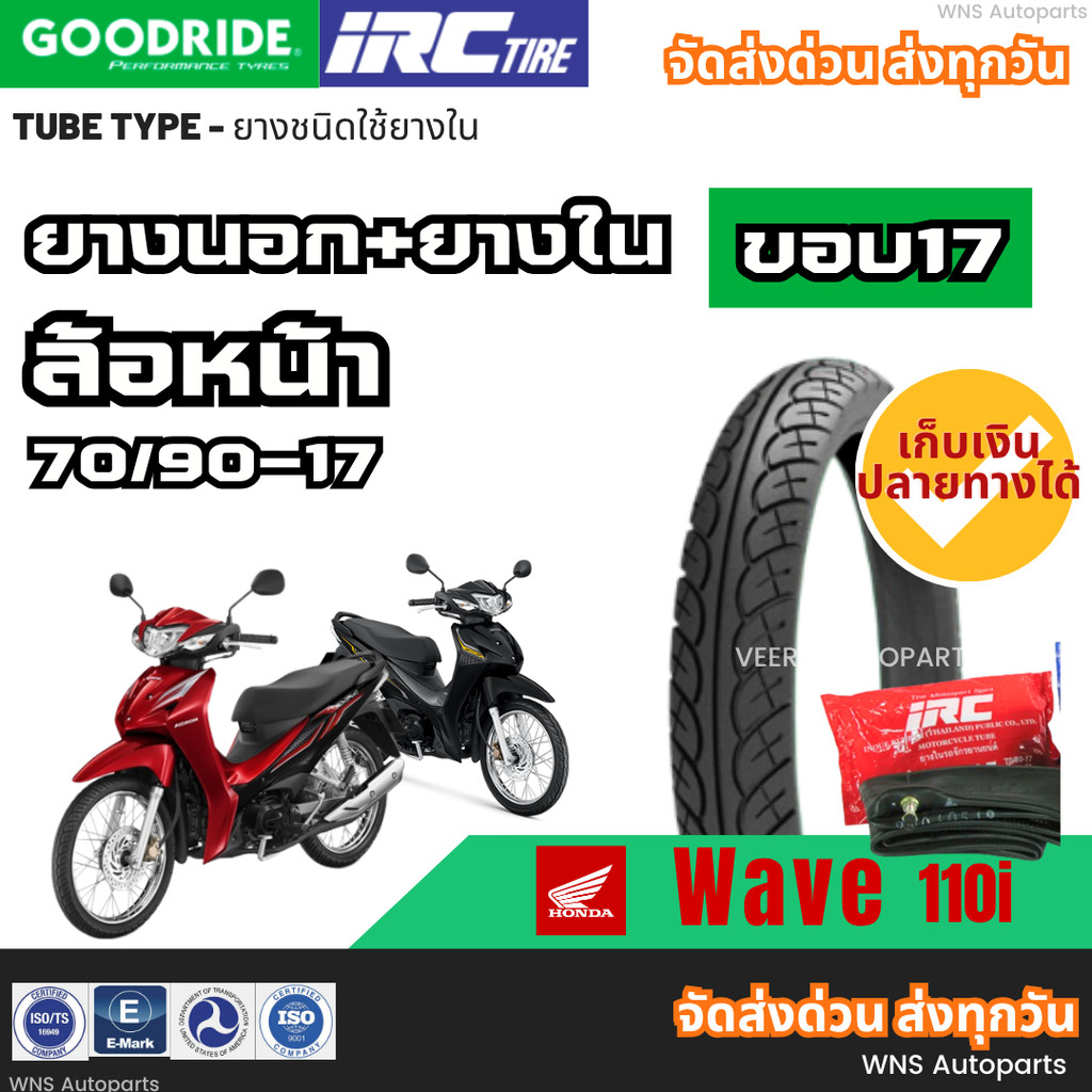 ยางนอกใหม่มือ1 ปี2025 ยางมอเตอร์ไซค์ฮอนด้าเวฟ 110i HONDA Wave110i ราคาถูก ขอบ17 ส่งไว กู๊ดไรด์ IRC