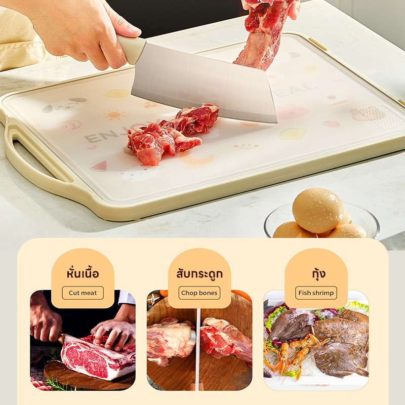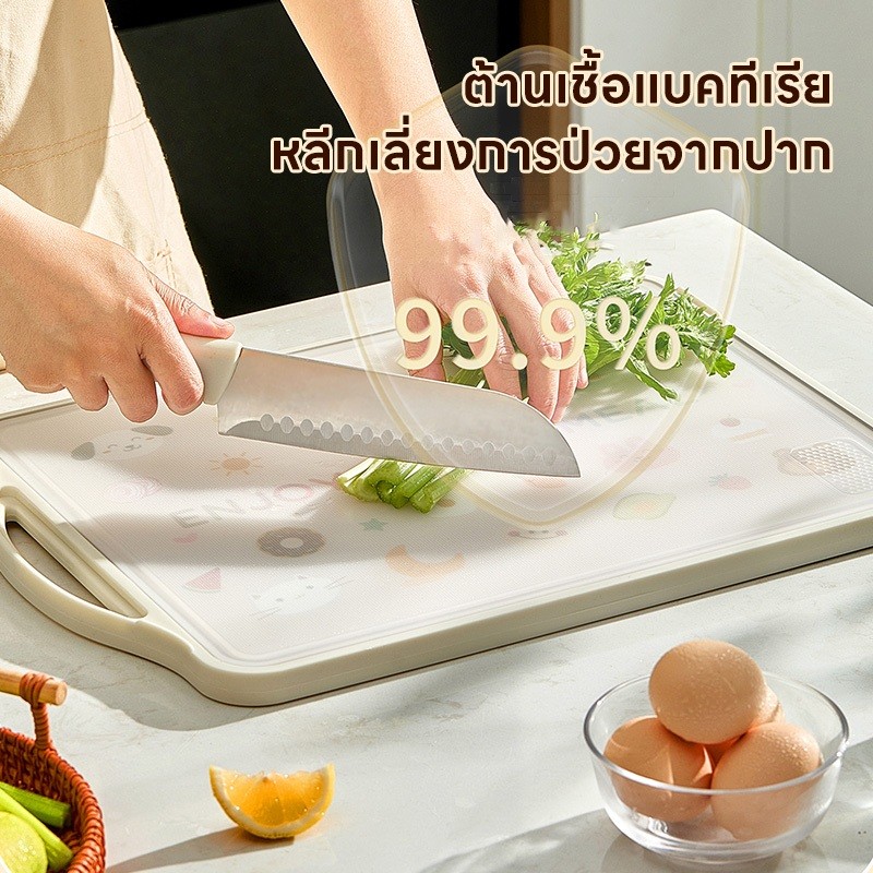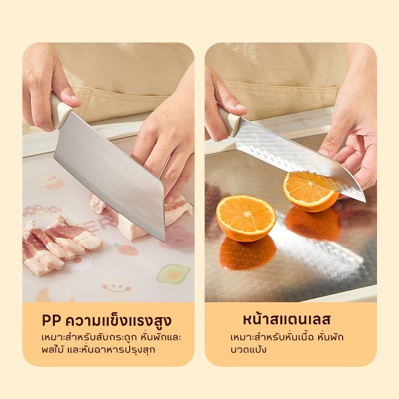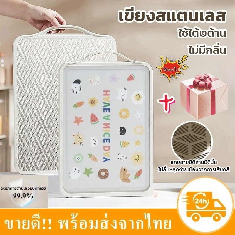 เขียงสแตนเลส Sunny เขียงสองด้านป้องกันแบคทีเรียและเชื้อรา หนา 2 ซม. ทำความสะอาดง่าย
