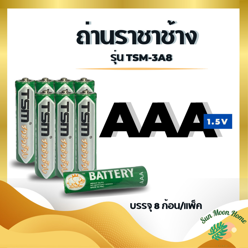 ถ่านไฟฉาย AAA [แท้พร้อมส่ง] ราชาช้าง 96 ก้อน แพ็คละ8ชิ้น บรรจุ 12แพ็ค/กล่อง รุ่น TSM-3A8