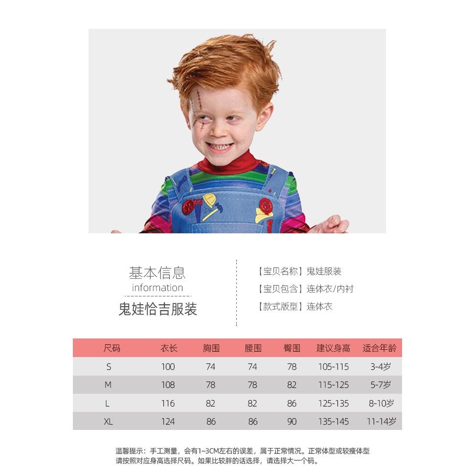 ชุดเครื่องแต่งกายตุ๊กตาผีชัคกี้สำหรับเด็ก เหมาะสำหรับวันฮาโลวีน