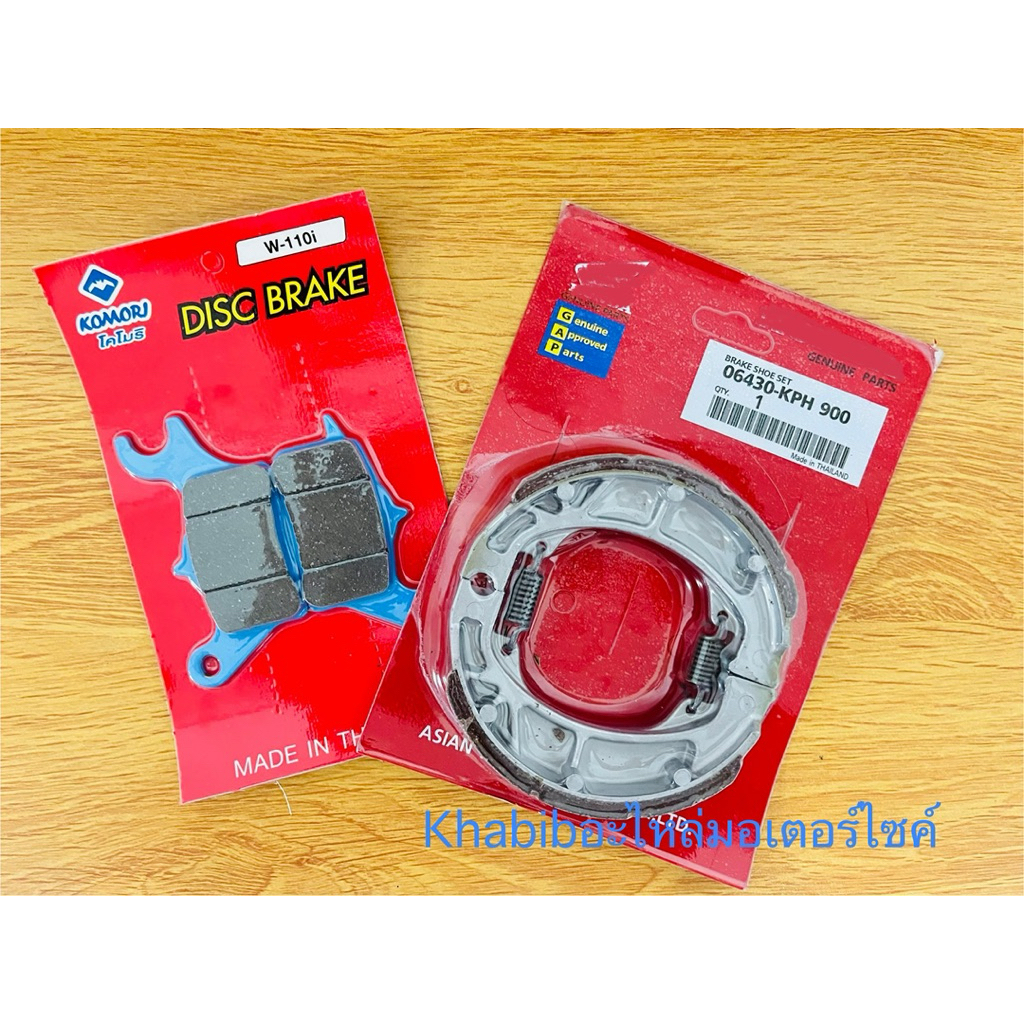 ผ้าดิสเบรคหน้าเวฟโคโมริ+ผ้าเบรคหลัง WAVE 110-i เวฟ110i เก่า/ใหม่ Wave110-i LED ทุกปี +WAVE125i ทุกปี ปลาวาฬ Wave125i LED
