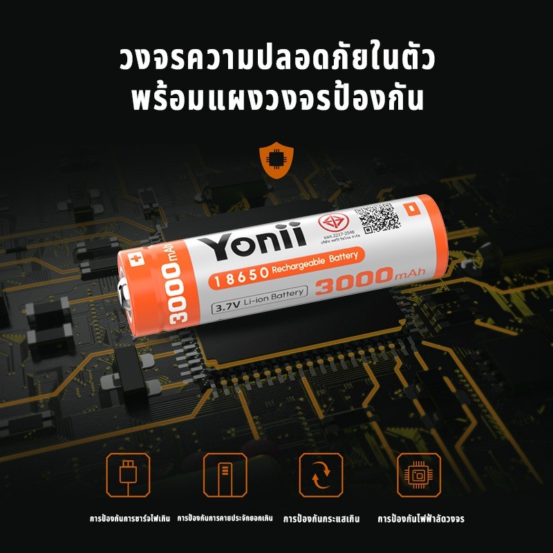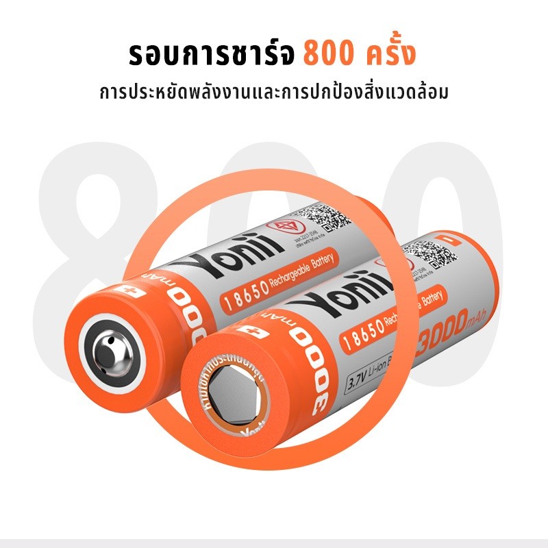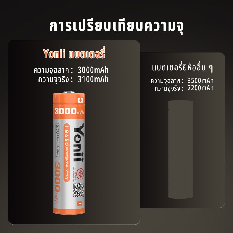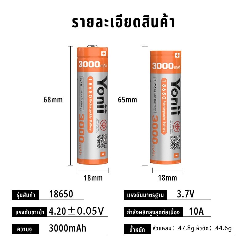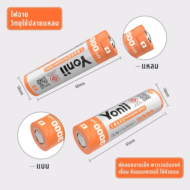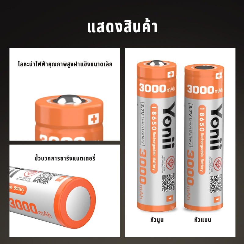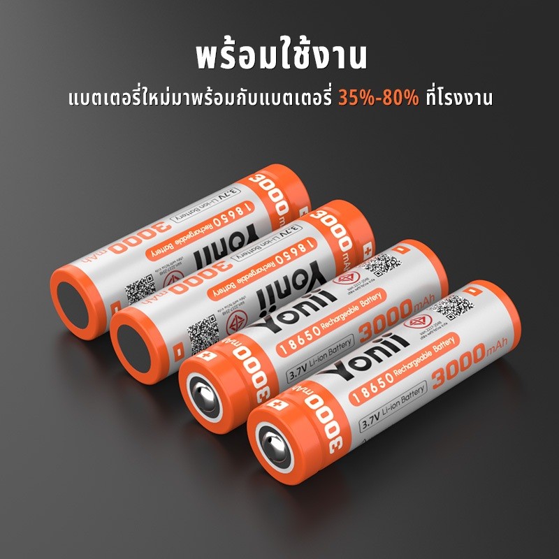 YONII 18650 แบตเตอรี่ลิเธียมแบบชาร์จไฟได้ 3.7V 3000mAh ความจุจริงสามารถใช้สําหรับไฟฉายพัดลม, เครื่องชาร์จแบตเตอรี่ Q2/Q4