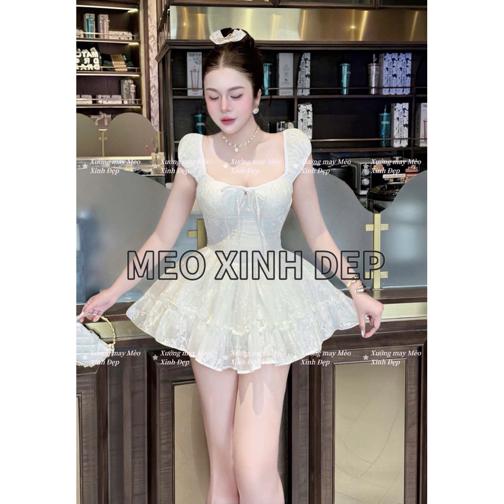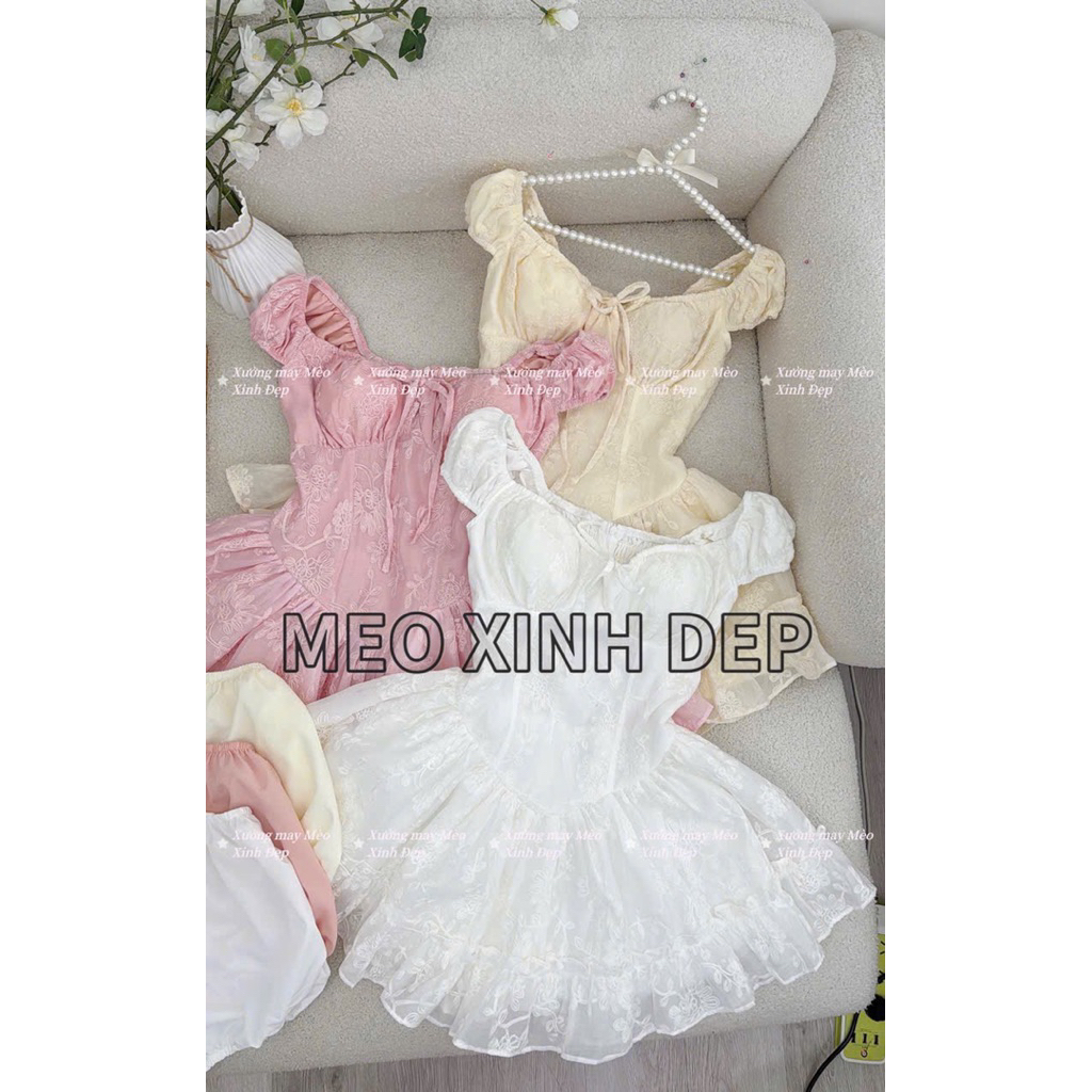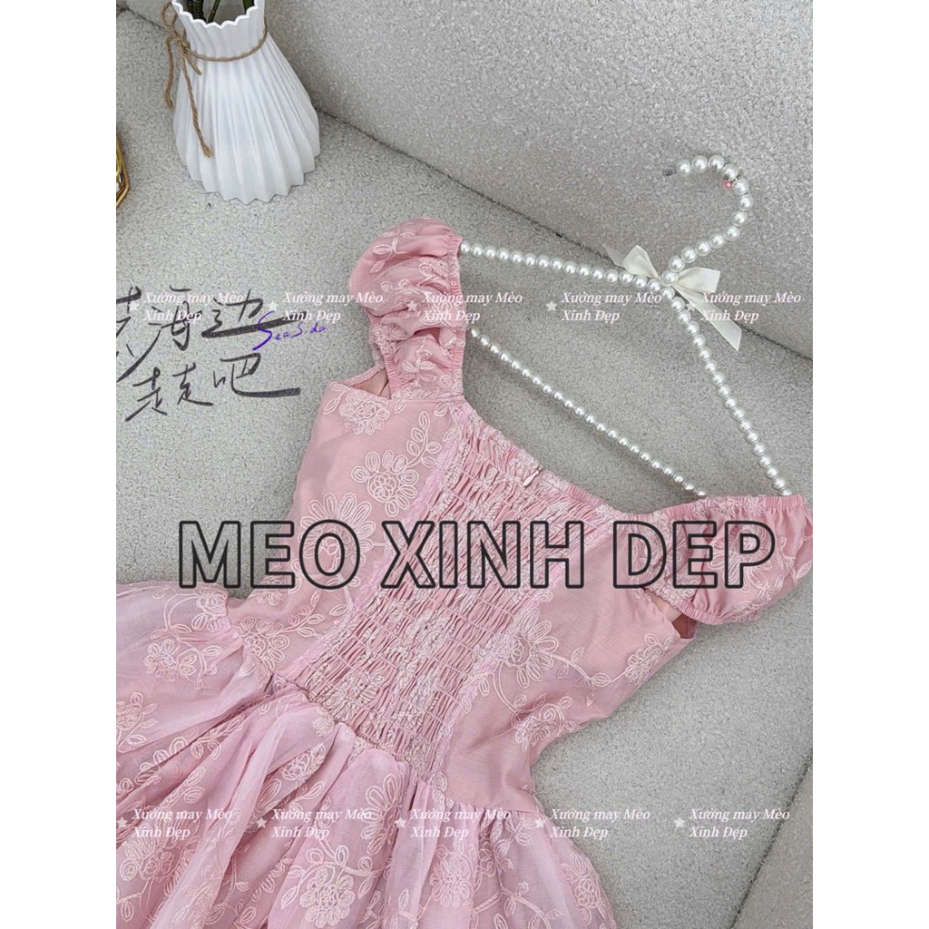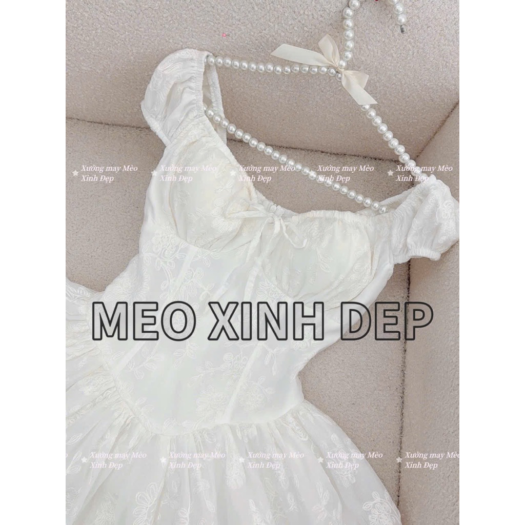 ชุดเดรสแขนนางฟ้าปักลายดอกไม้ (Makeby XM Beautiful Cat) พร้อมรูปถ่ายสินค้าจริง