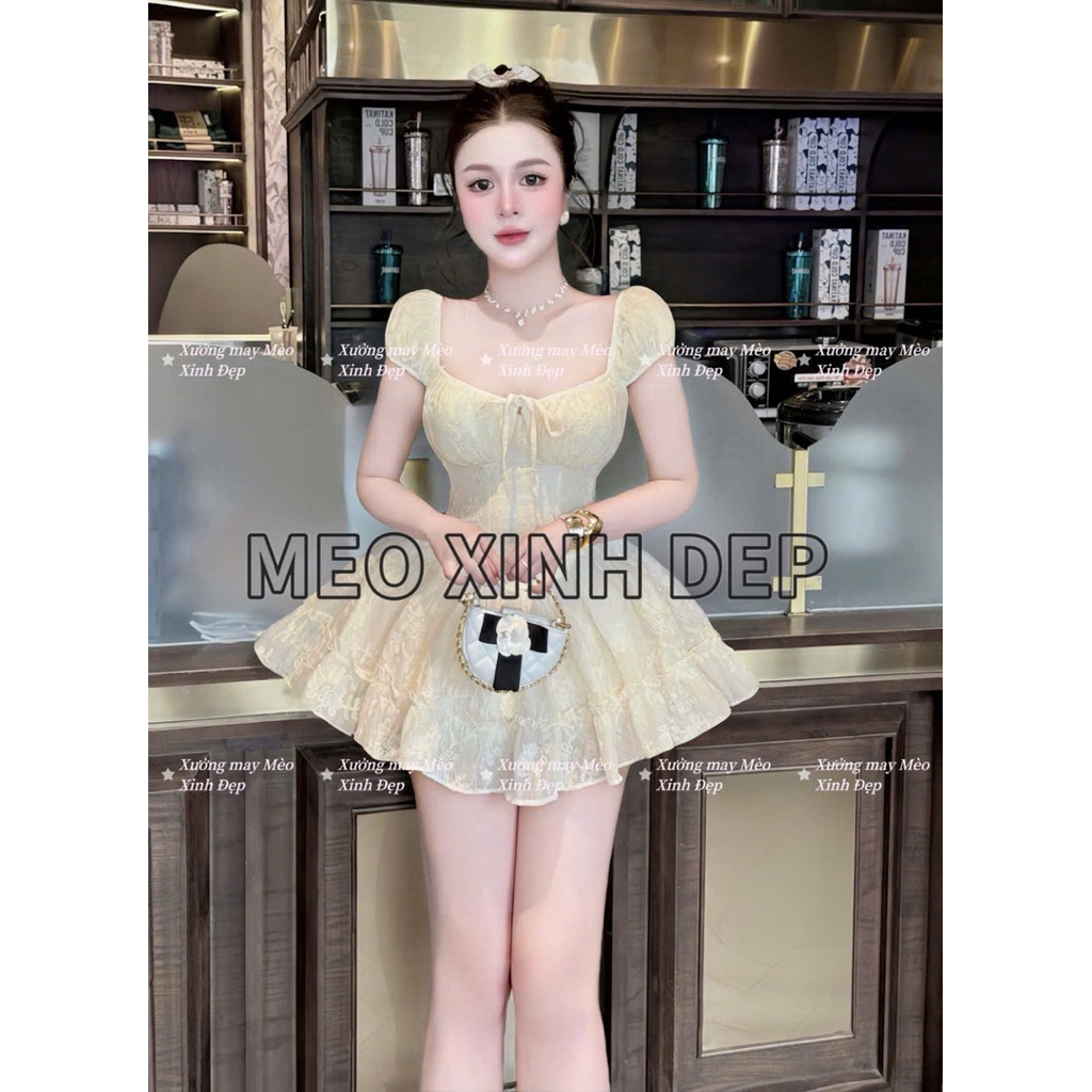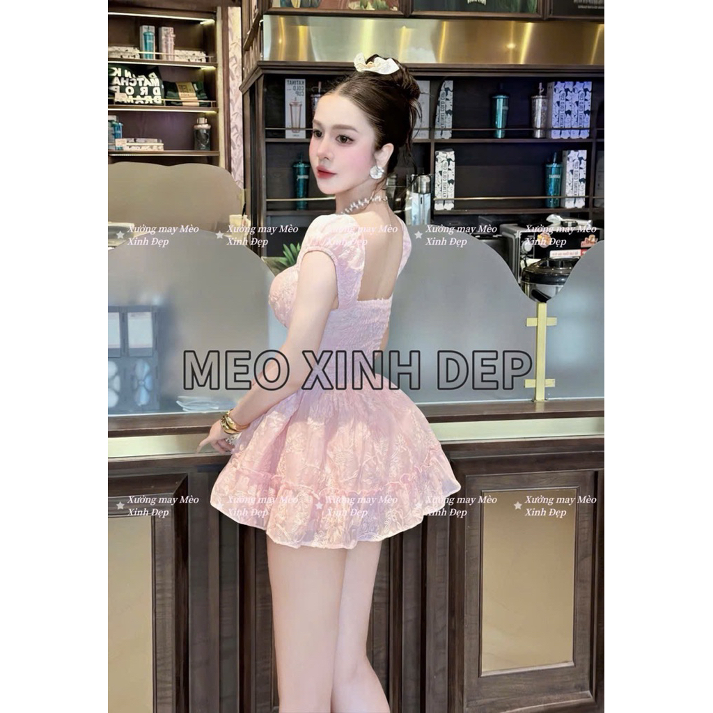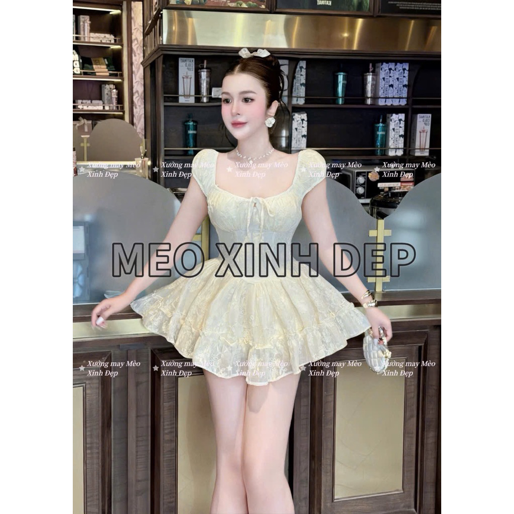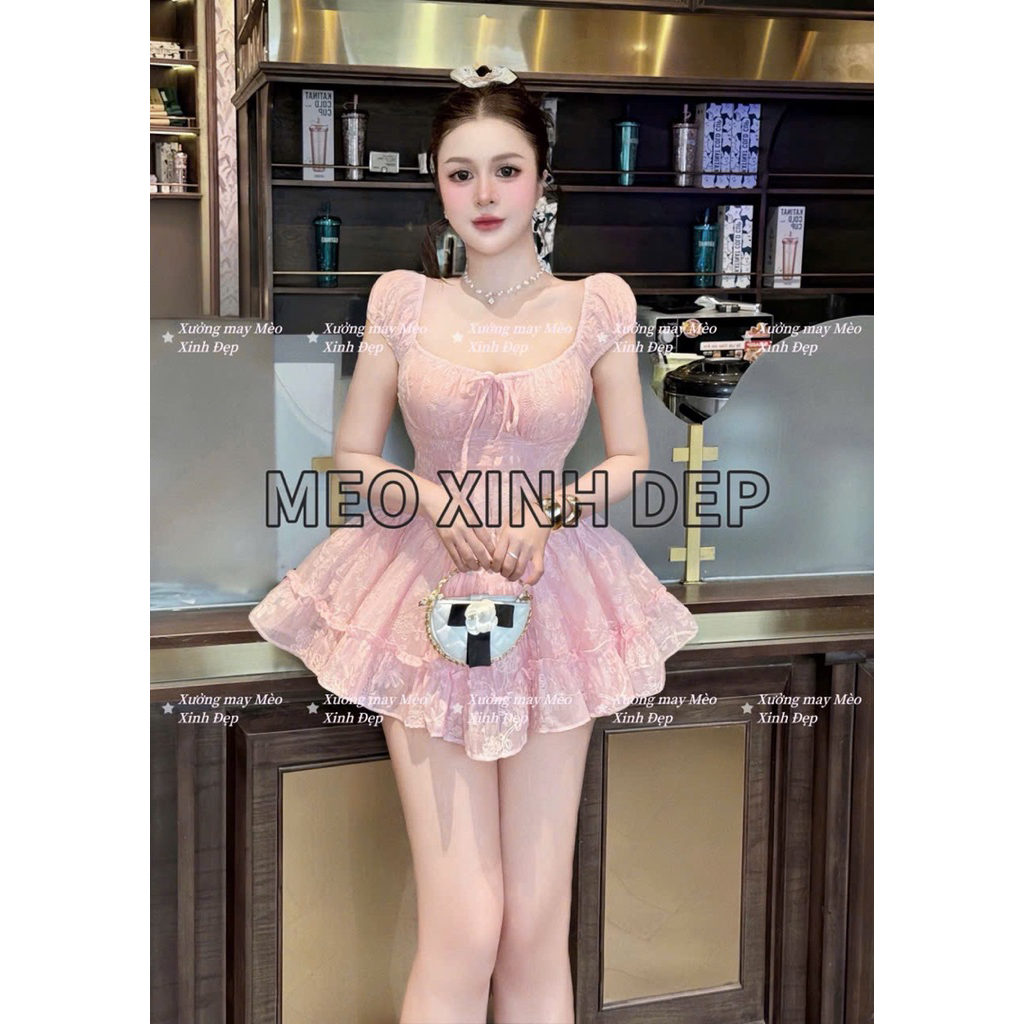 ชุดเดรสแขนนางฟ้าปักลายดอกไม้ (Makeby XM Beautiful Cat) พร้อมรูปถ่ายสินค้าจริง