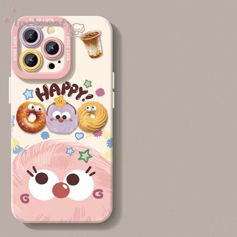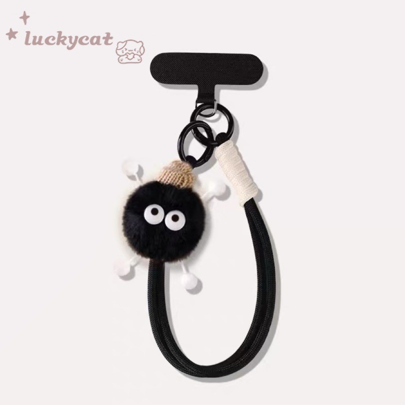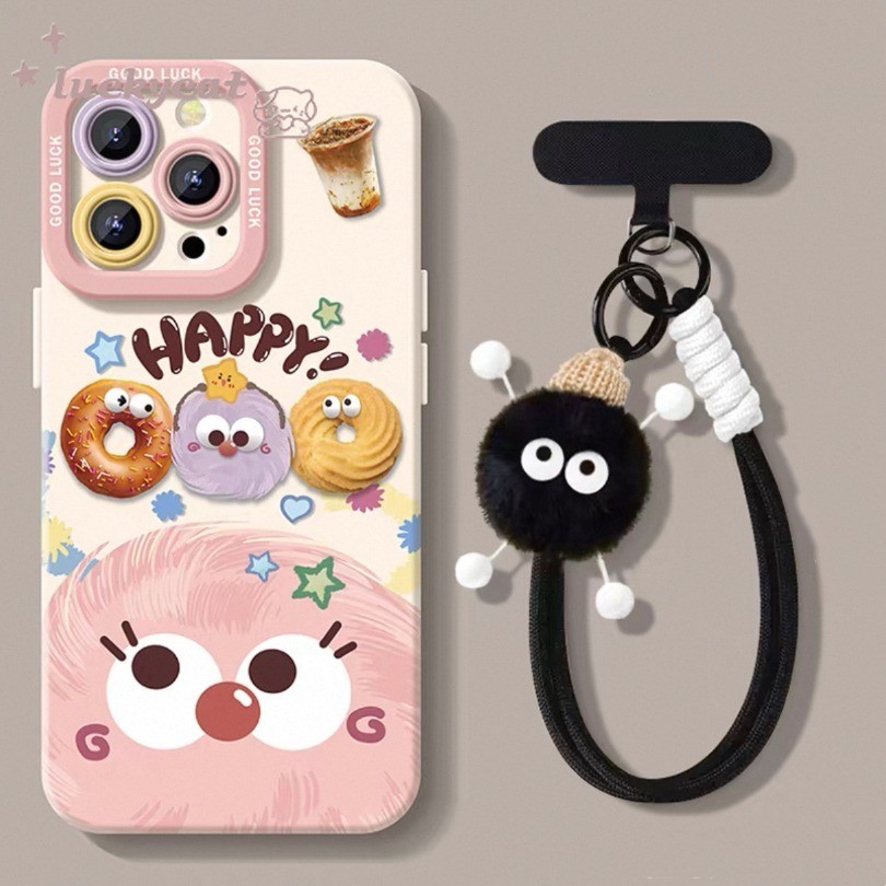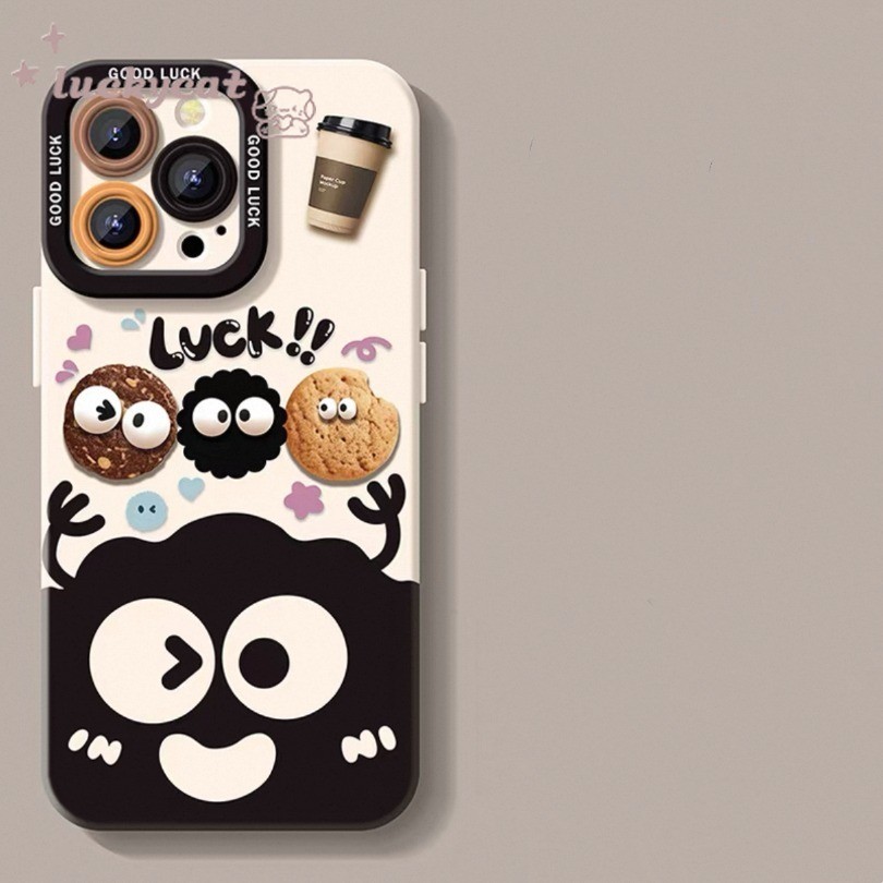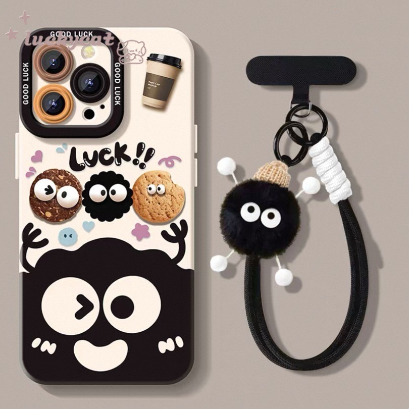 ใช้งานร่วมกับ Wth iPhone 16 15 14 13 12 11 Pro Max X Xr Xs Max 7 8 Plus SE2020 เคสโทรศัพท์ Ins น่ารักสนุกบิสกิตลูกถ่านหินสีดํา + Lanyard ฝาหลังแบบนุ่ม