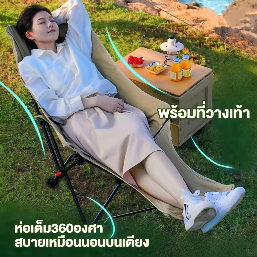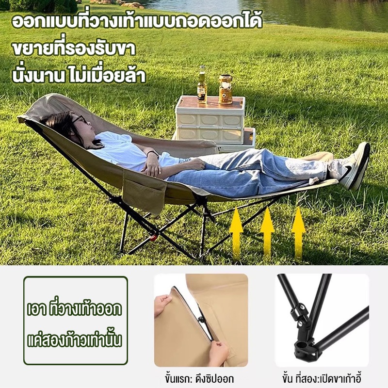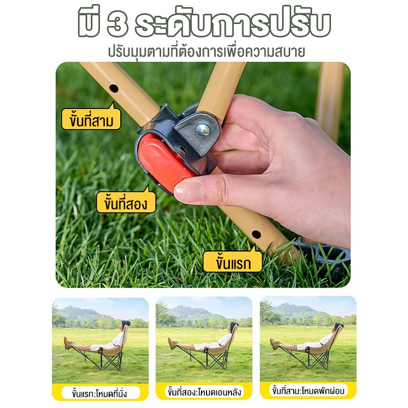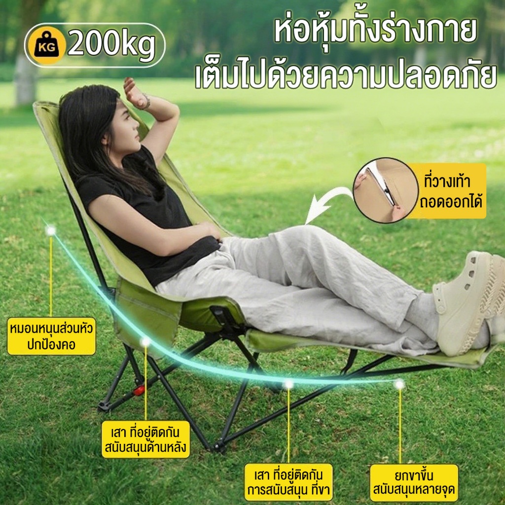 เก้าอี้แคมป์ปิ้ง เก้าอี้สนามพับได้ 3ระดับ พร้อมที่วางขา แบบพกพา แถมถุงเก็บ รับน้ำหนัก200กก