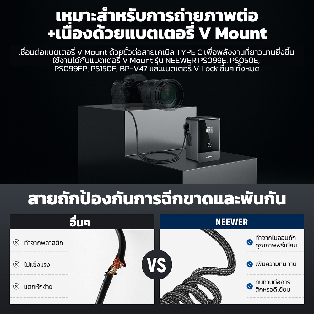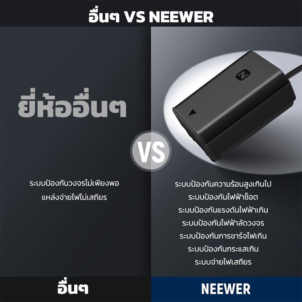 【กล้องที่รองรับ】แบตเตอรี่ดัมมี่ NEEWER USB C ถึง NP-FZ100 ใช้สำหรับเปลี่ยนแบตเตอรี่ NP-FZ100 เข้ากันได้กับกล้อง Sony FX3 FX30 ZV-E1 A1 A6600 A6700 A7III A7IV A7C A7CII A7CR A7RIII A7RIV A7RV A7SIII A9 A9II