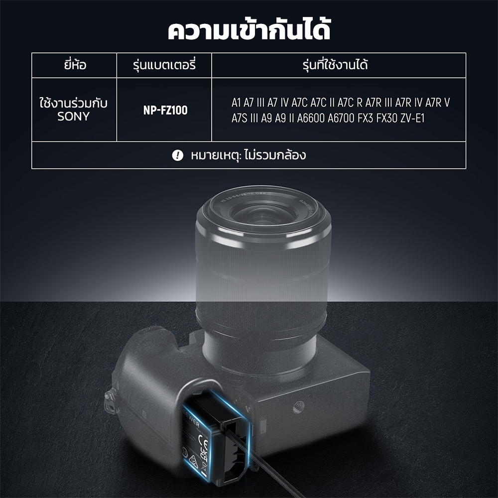 ออกแบบมาเพื่อเปลี่ยนแบตเตอรี่ NP-FZ100 ด้วยขั้วต