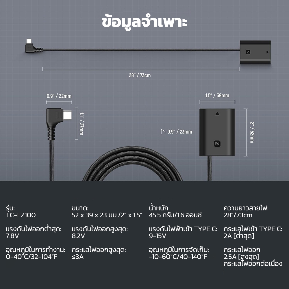 NEEWER TC-FZ100 USB C ถึง NP-FZ100 Dummy แบตเตอรี่ 8.2V เอาต์พุตสําหรับเครื่องชาร์จแบบพกพา