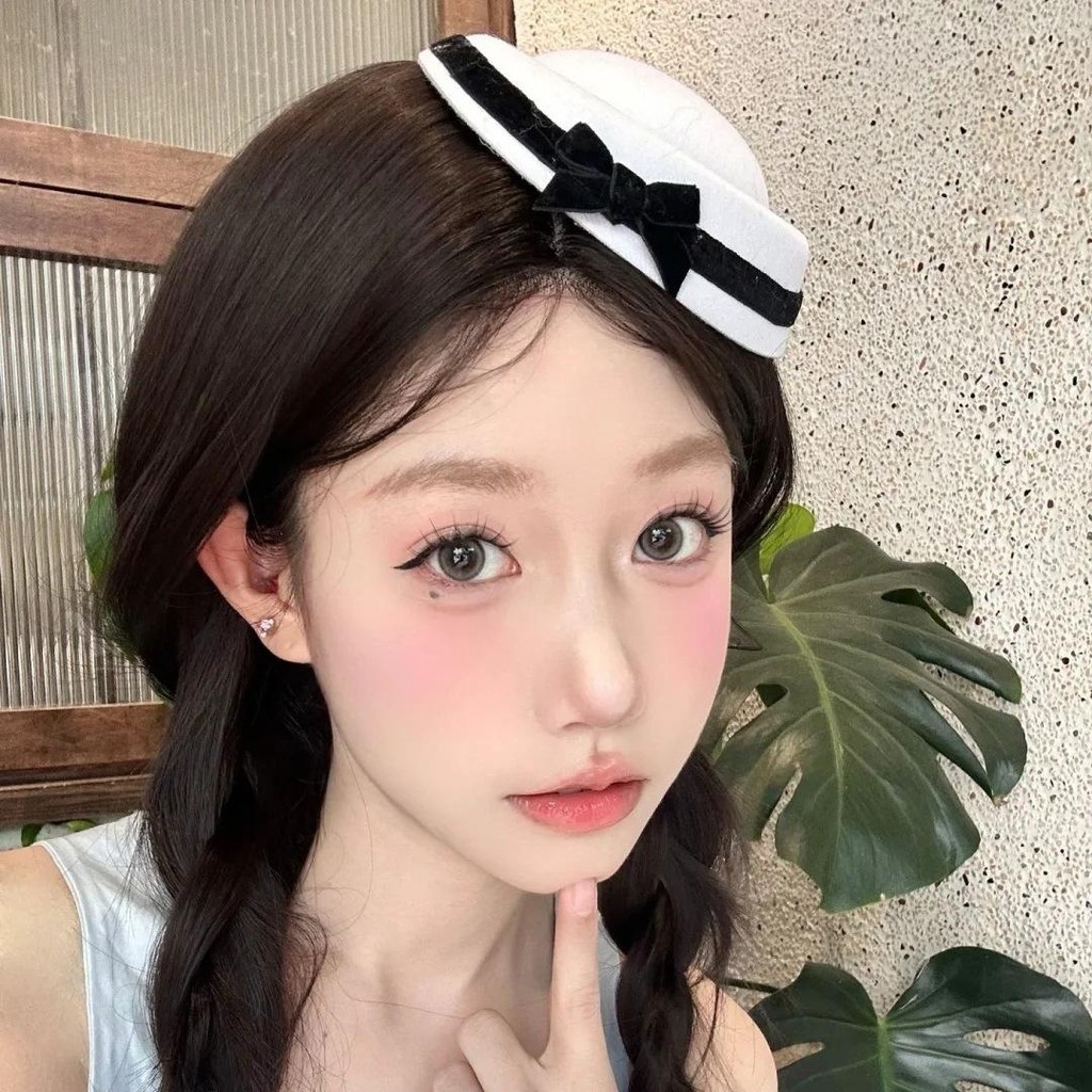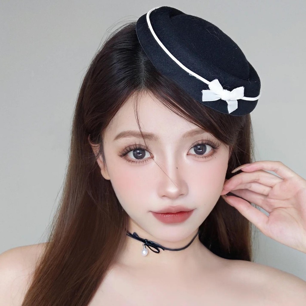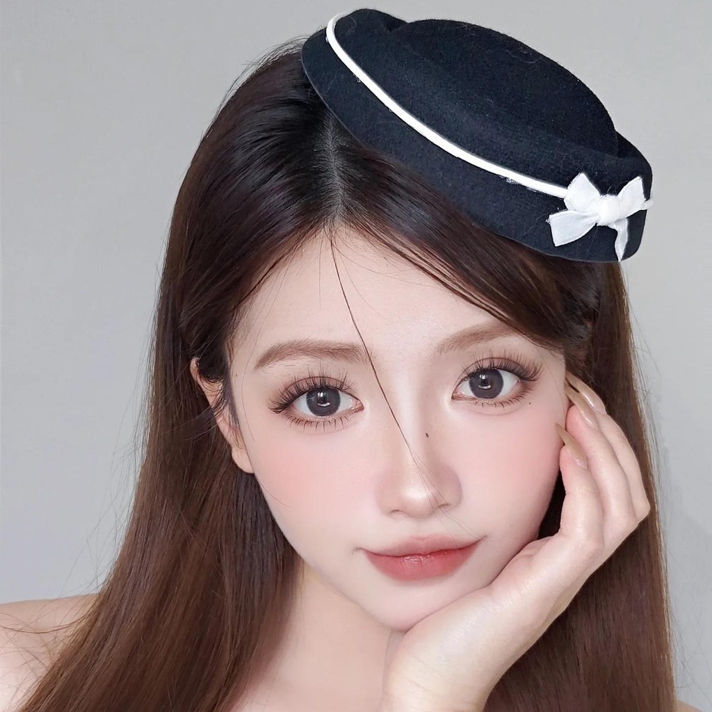 Cute_Girl 😍😍 หมวกแฟชั่นผู้หญิง การตกแต่งโบว์ หมวกทรงสูงขนาดเล็ก สไตล์อังกฤษ หวานและน่ารัก พร้อมส่ง