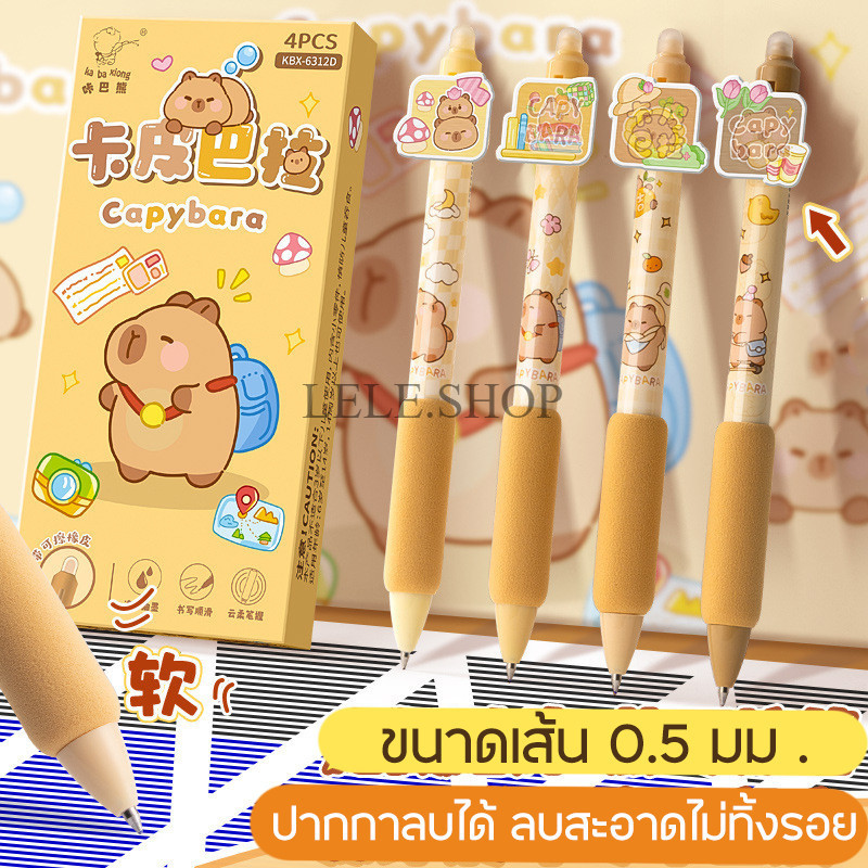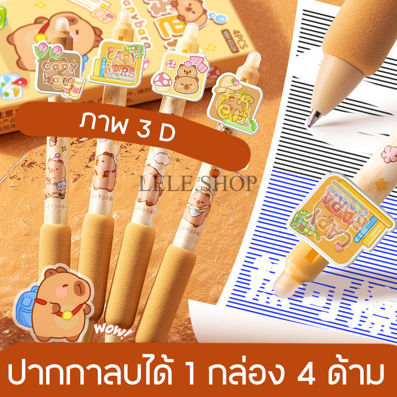 ปากกาลบได้ ปากกาเจล ลายการ์ตูนคาปิบาร้า ภาพ3D ขนาดเส้น 0.5มม. 1 กล่อม 4 ด้าม อุปกรณ์การเรียน สินค้าพร้อมส่งในไทย