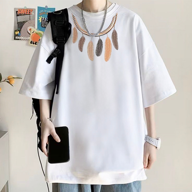 เสื้อผู้ชาย เสื้อยืดคอกลม แขนสั้น สตรีทแฟชั่น สกรีนลายสุดฮิต oversize tshirt men เสื้อคนอ้วน สีขาว