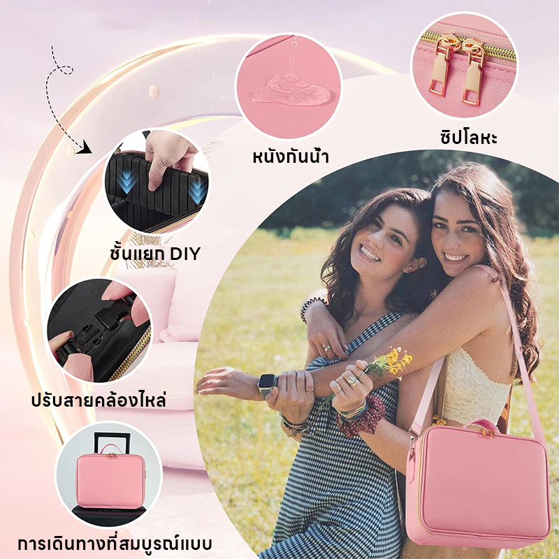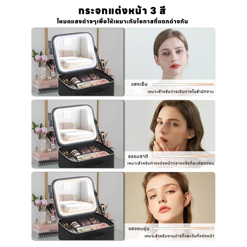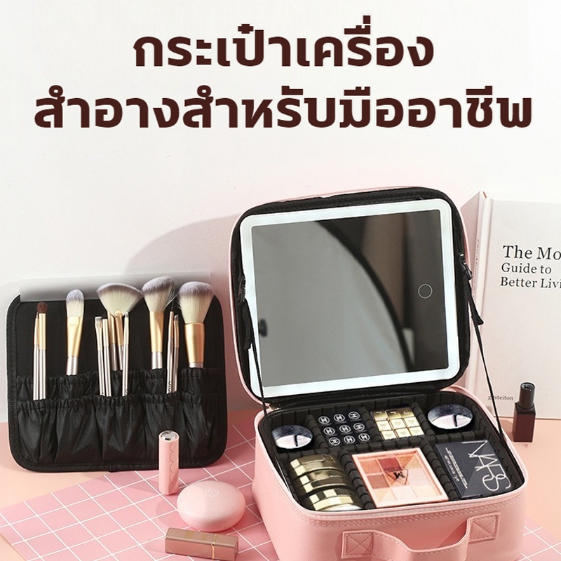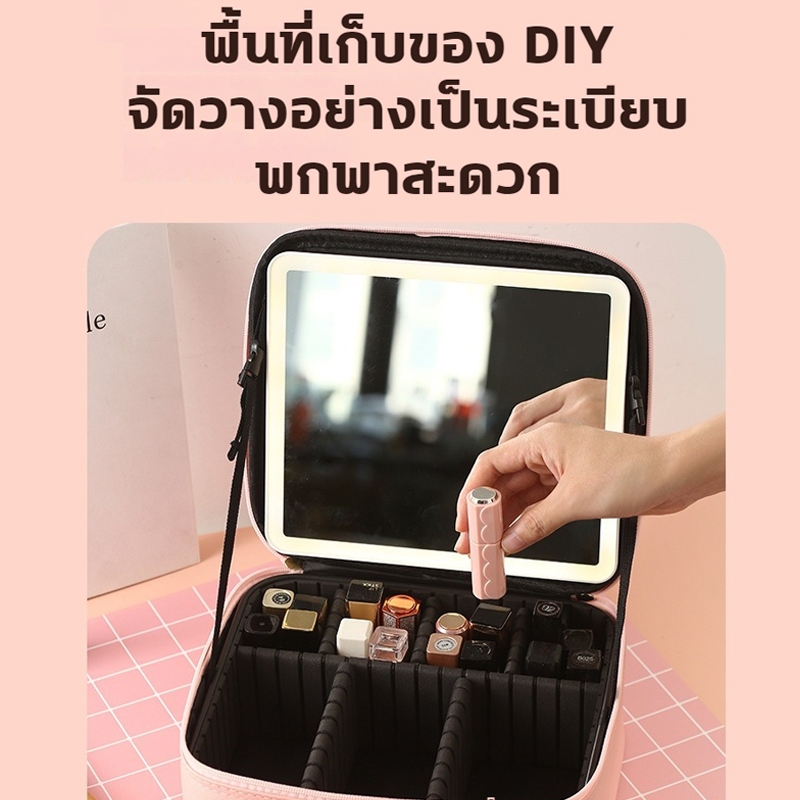 กระเป๋าเครื่องสำอาง กระเป๋าเครื่องสำ ปรับได้ 3 ไฟ LED จุของได้เยอะ กัแบบพกพา กันน้ำ กระเป๋าเครื่องสําอางอัจฉริยะ