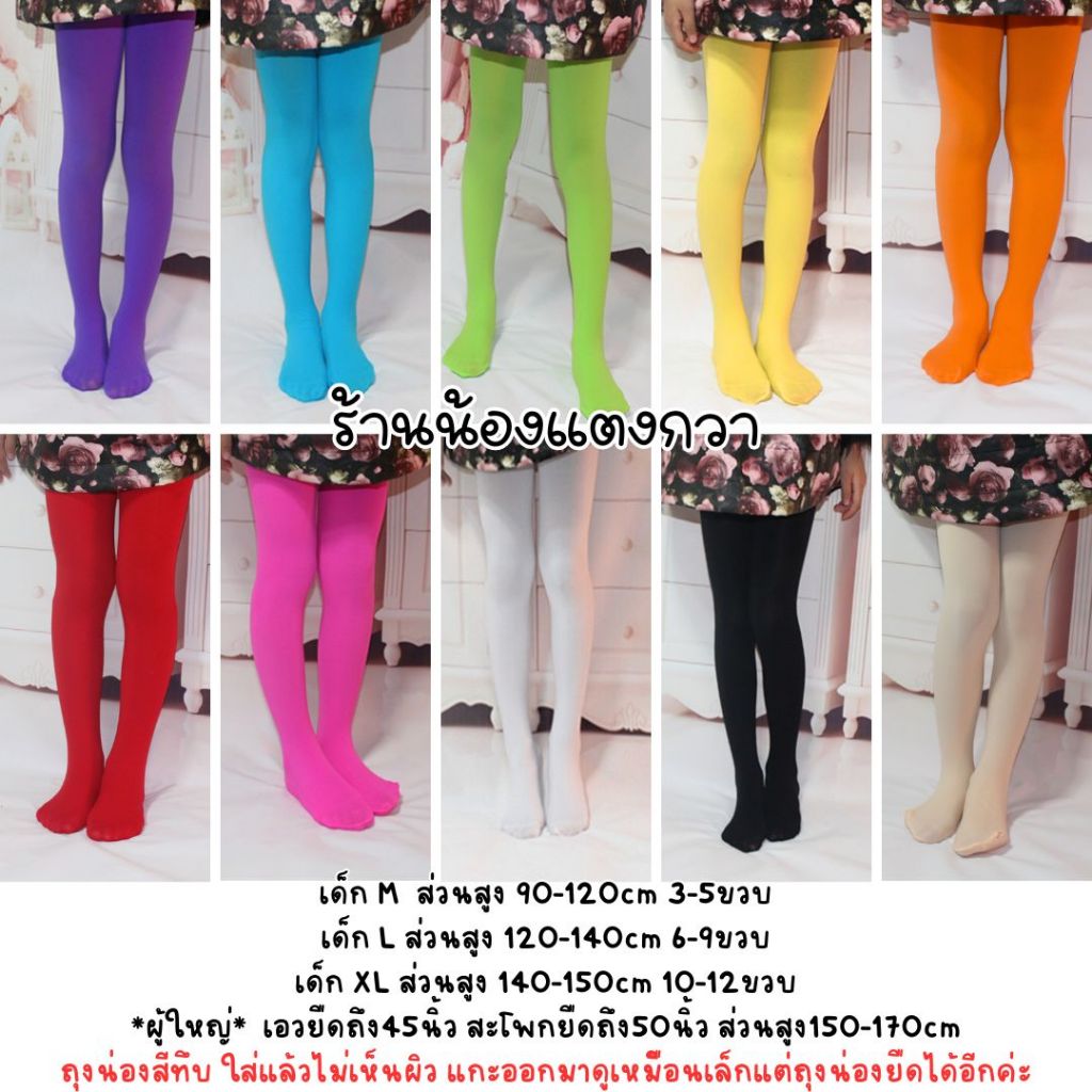 ถุงน่องเลคกิ้งสี เด็ก-ผู้ใหญ่ เนื้อหนา มีไซส์ยืดได้เยอะ
