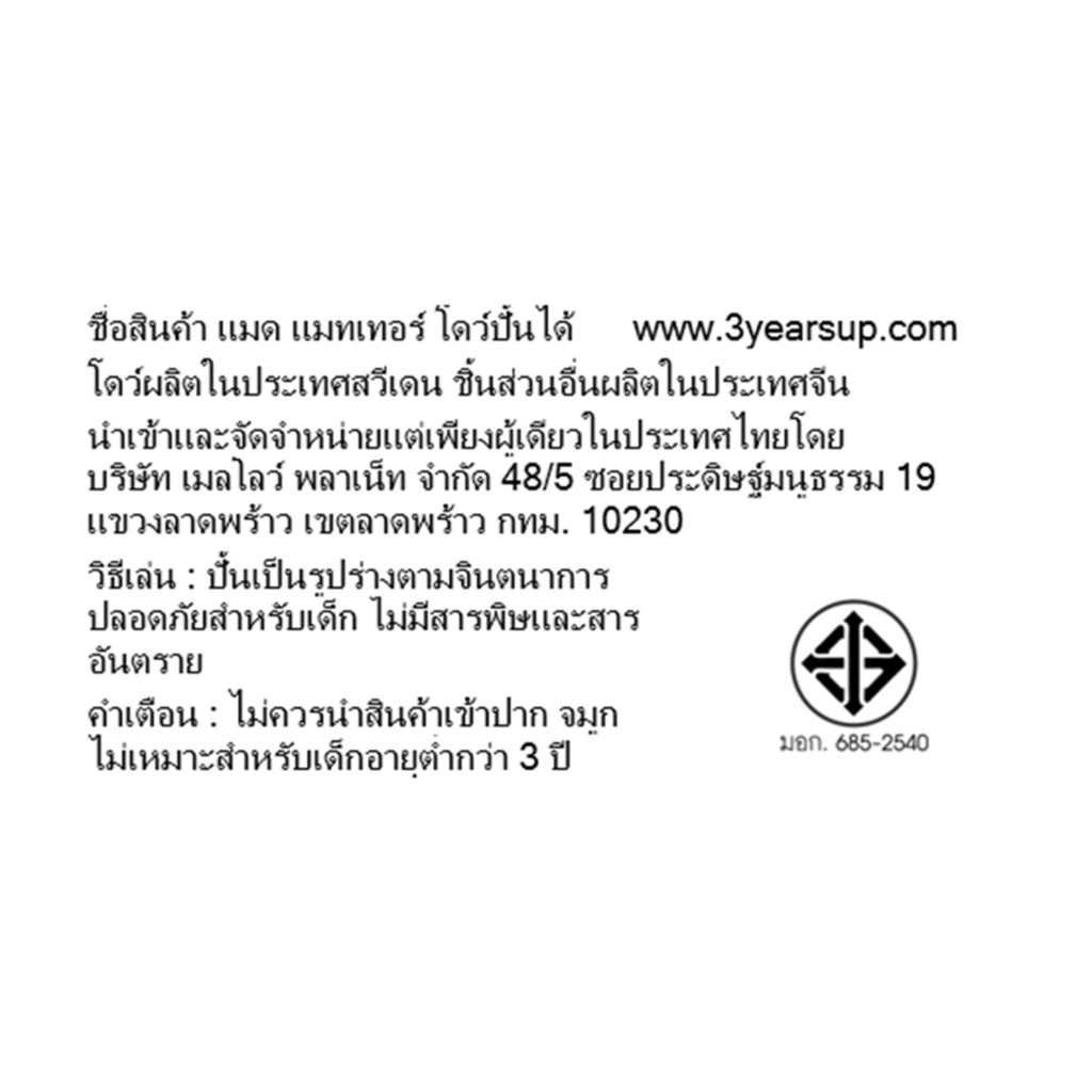 – สินค้าประกอบด้วย: โดว์ 1 ถุง (283 g.) (ไม่มีอุปกรณ์) มาในถุงซิปล็อค