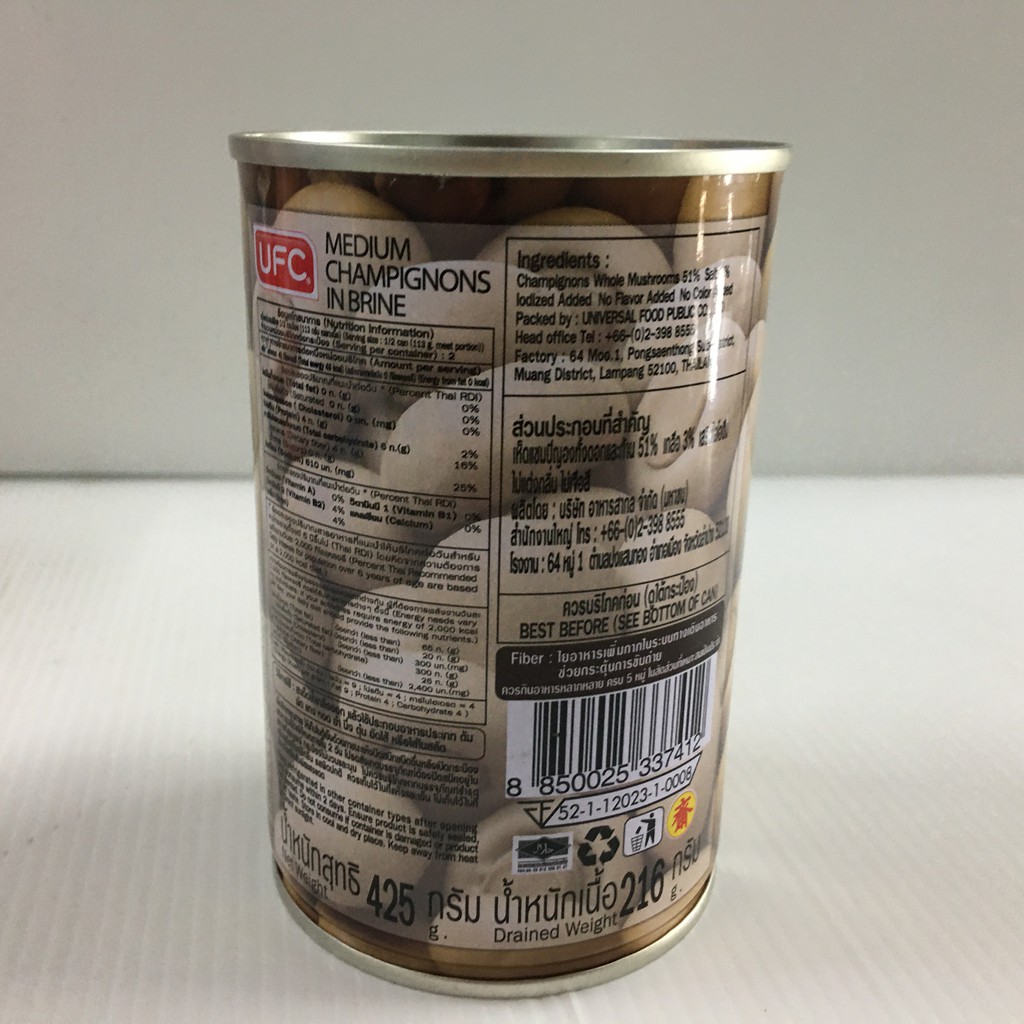 UFC Medium Champignons in Brine เห็ดแชมปิญองในน้ำเกลือชนิดดอกกลาง ตรา ยูเอฟซี 425 กรัม