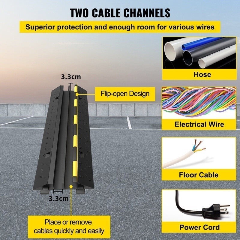 ยางป้องกันสายเคเบิ้ล ลูกระนาด ยางลดความเร็ว แบบ 2 ช่อง ป้องกันสายไฟ/สายยาง/สายเคเบิ้ล แบบจิ๊กซอ ยาว100cm. กว้าง25cm. สูง5cm.