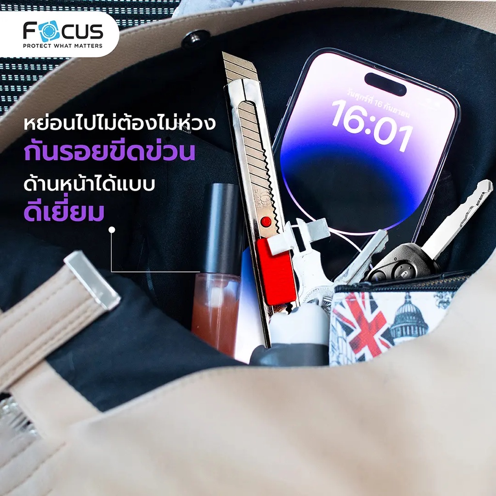 โฟกัส ฟิล์มกระจก เต็มจอ แบบใส ขอบสีดำ Focus Full Frame Tempered Glass ของแท้100%