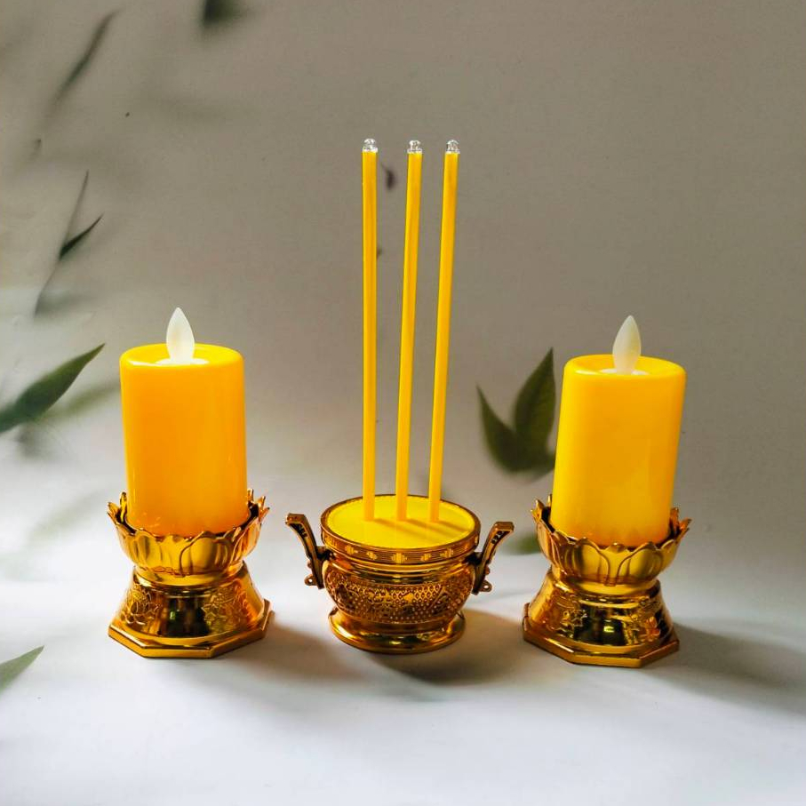 ชุดธูปเทียน ครบเซ็ท มีให้ลูกค้าได้เลือกซื้อหลายแบบ ใช้สำหรับกราบไหว้บูชา พระพุทธรูป สิ่งศักดิ์สิทธิ์ เพื่อเสริมความเป็นสิริมงคลให้กับชีวิตและครอบครัว เปลวเทียนมีความพลิ้วไหว และแสงสว่างมากกว่าเทียนธรรมดา ทีสำคัญ ปลอดภัย ไร้ควันค่ะ