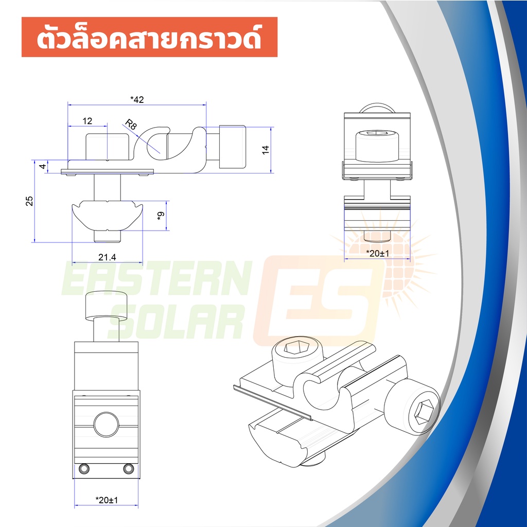 Solar Panel Photovoltaic Bolt-On Coupling Earthing Ground Lug Wire Clamp M8 อุปกรณ์ติดตั้งแผงโซล่าเซลล์มาตรฐาน ล็อคสายกราวด์