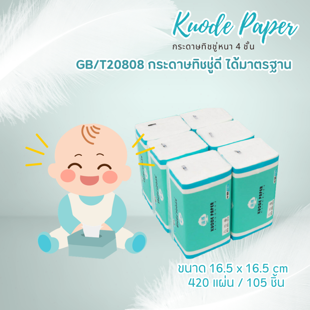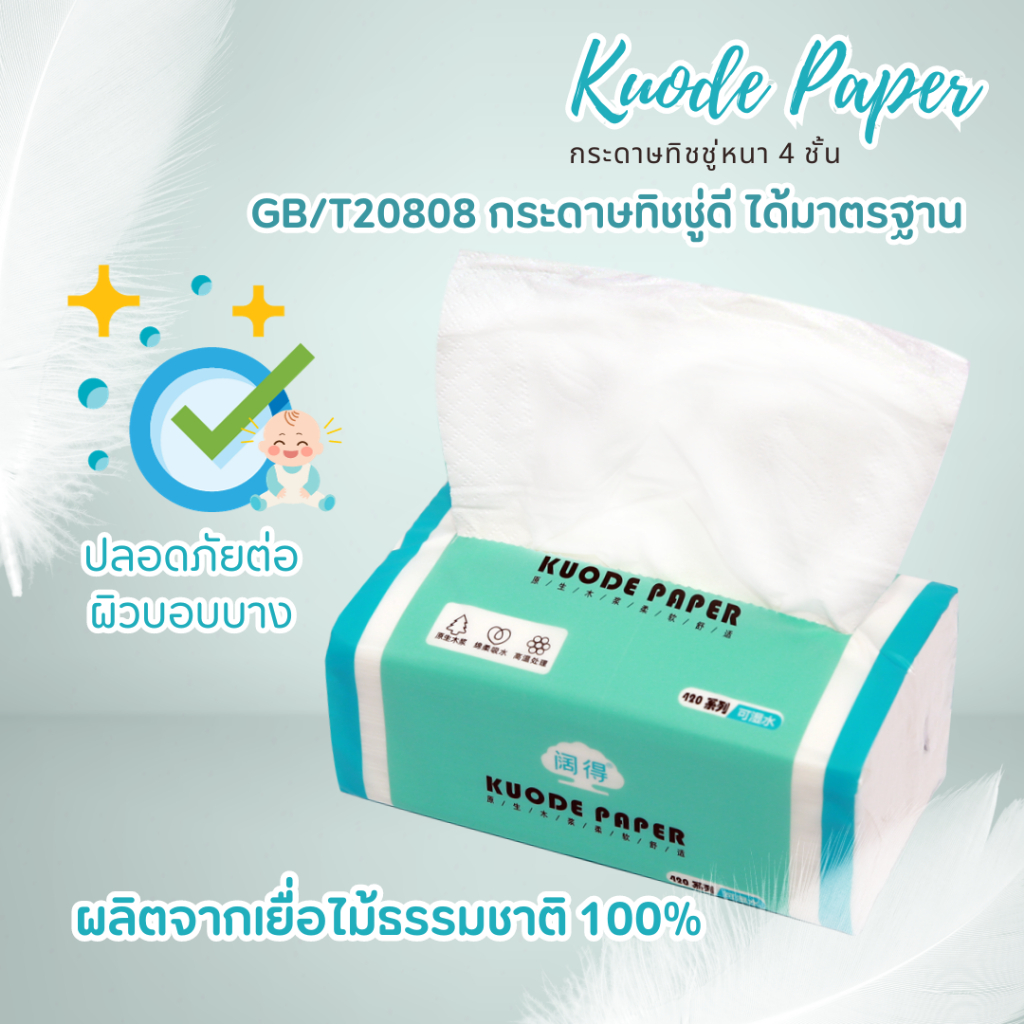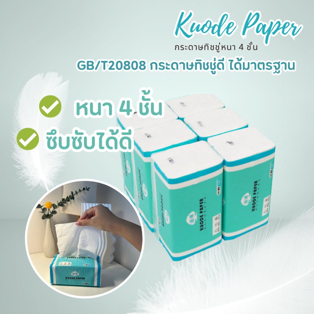 Kuode กระดาษทิชชู่ หนานุ่ม ซึมซับดี กระดาษหนา 4 ชั้น