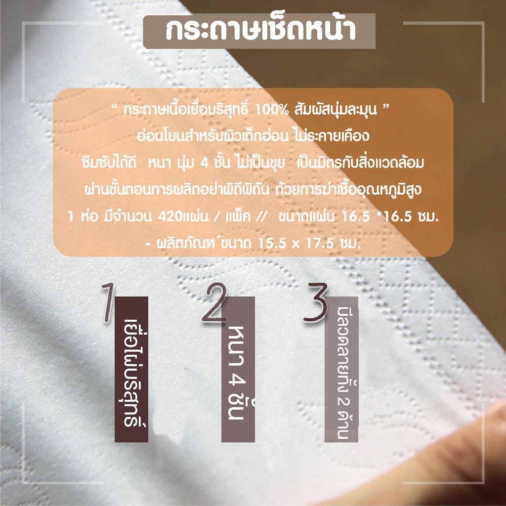▪️ กระดาษทิชชู่ อเนกประสงค์สำหรับเช็ดหน้าและใช้ทั่วไปได้มาตรฐาน GB/T20808 *
