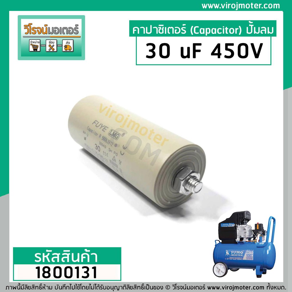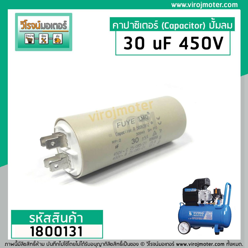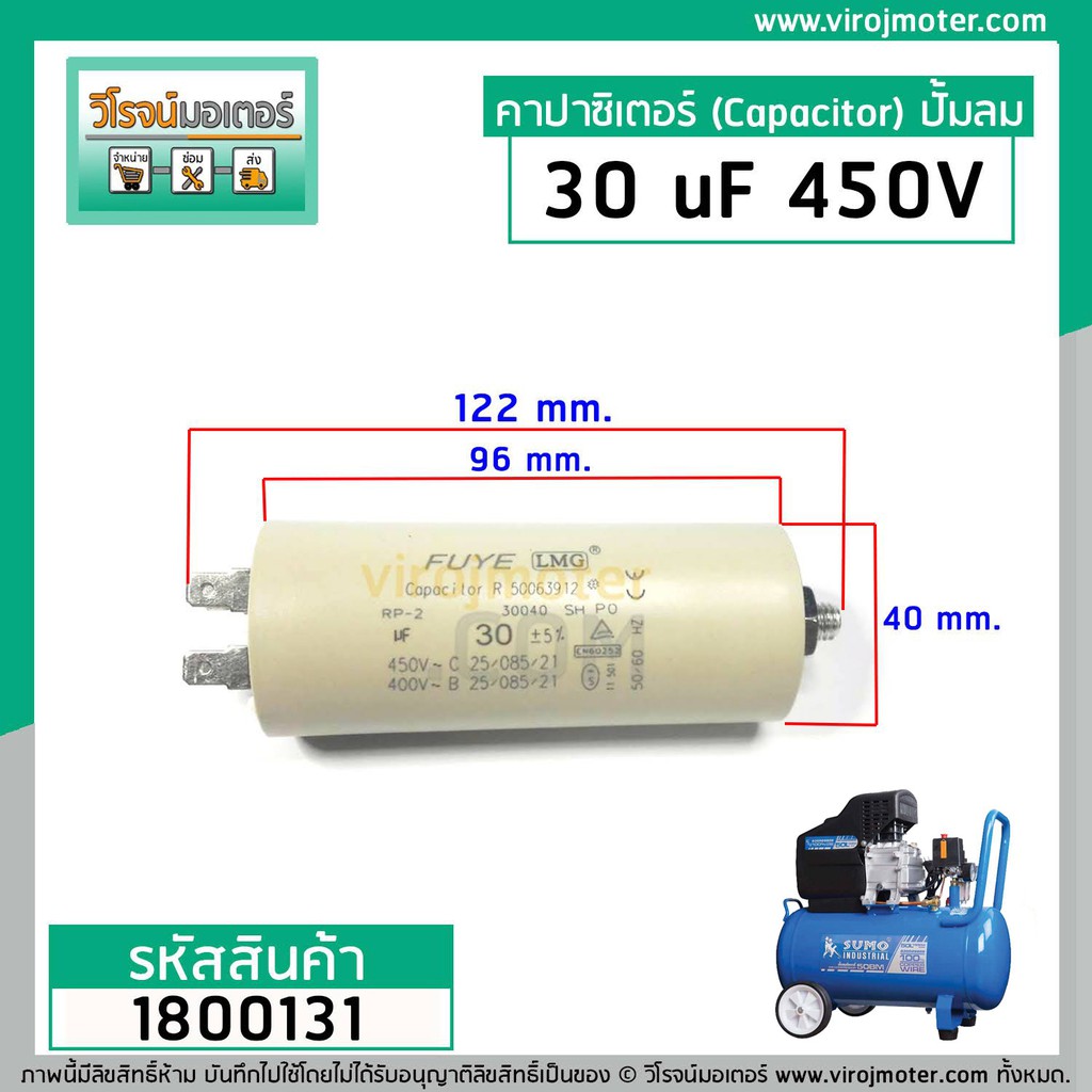 คาปาซิเตอร์ (Capacitor) ปั้มลม 30 uF 450V ตูดเกลียว M8 #กลม แบบเสียบ #LMG #1800131
