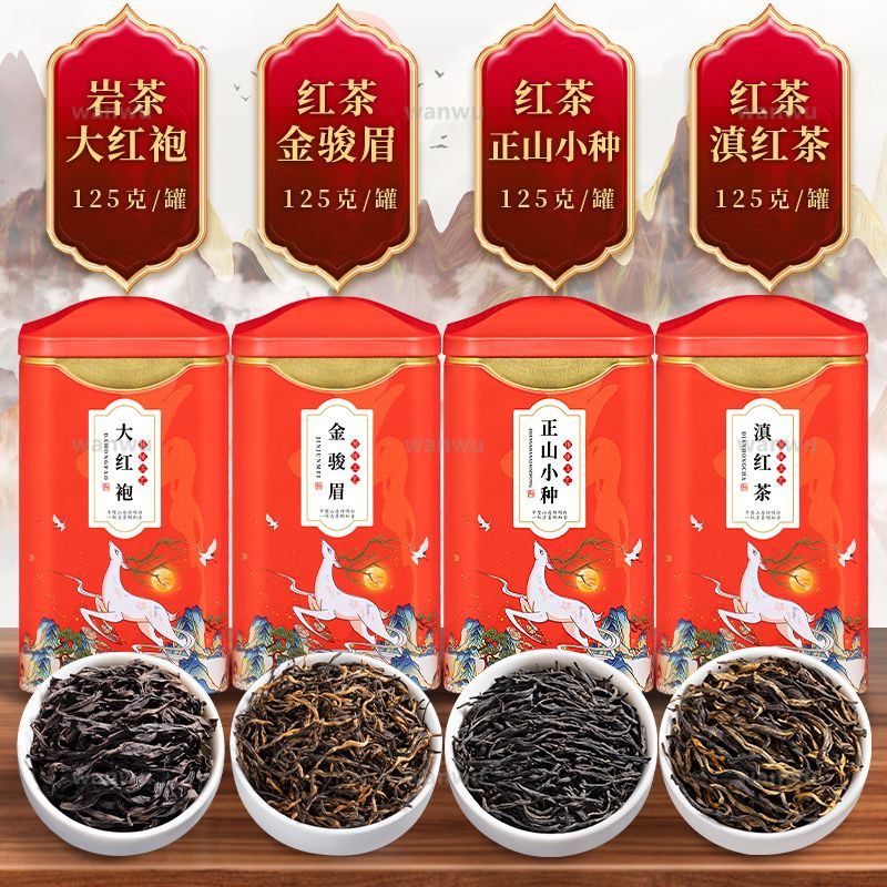 中国四大红茶套装(金骏眉、正山小种、大红袍、滇红茶),中国茶叶,Chinese Black Tea,ชาจีน, ชาดำจีน, Jin Jun Mei, Zheng Shan Xiao Zhong, Da Hong Pao, Dian Hong Tea