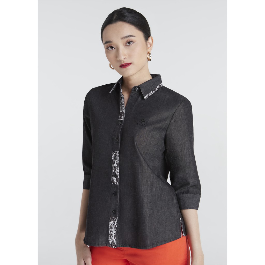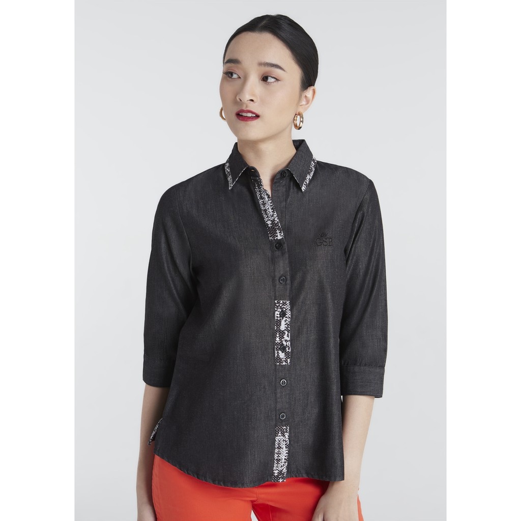 GSP JEANS SHIRT SLIM FIT เสื้อเชิ้ตจีเอสพี ผ้ายีนส์บาง แต่งดีเทล