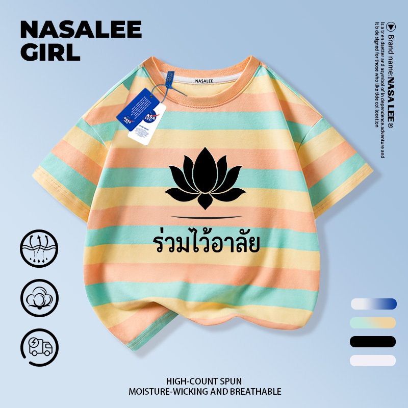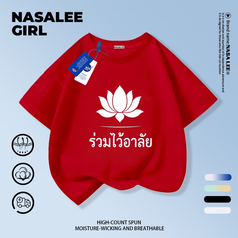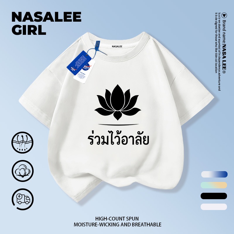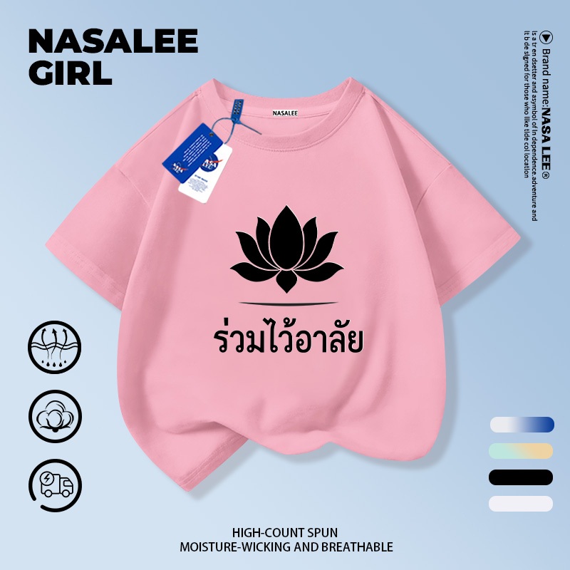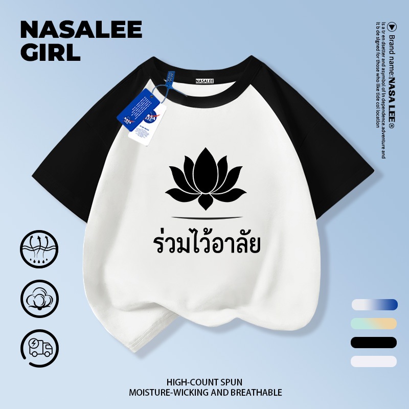【ส่งในวันเดียวกัน】เสื้อยืดเด็ก NASA สีดำ ผ้าฝ้ายระบายอากาศดี ลายดอกไม้จันทน์ 3-16 ปี ชาย-หญิง ทรงสวมใส่สบาย