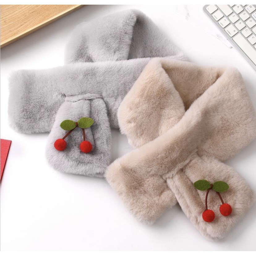 SC-Cherry ผ้าพันคอขนนุ่มนิ่ม แบบสอด มี Cherry เก๋ๆ