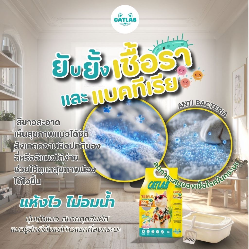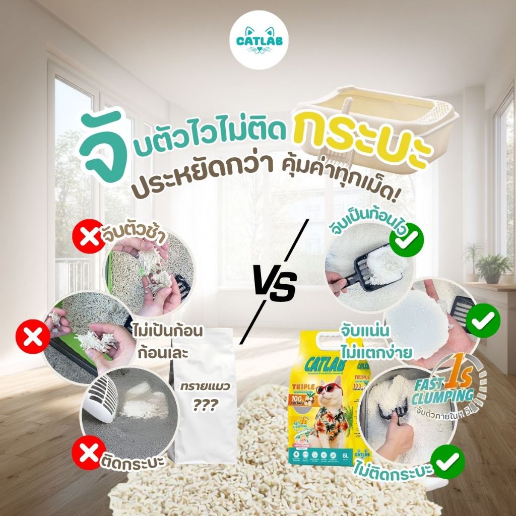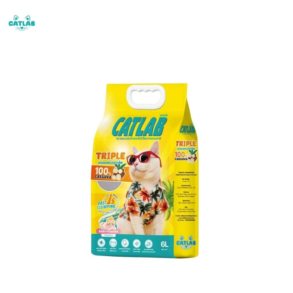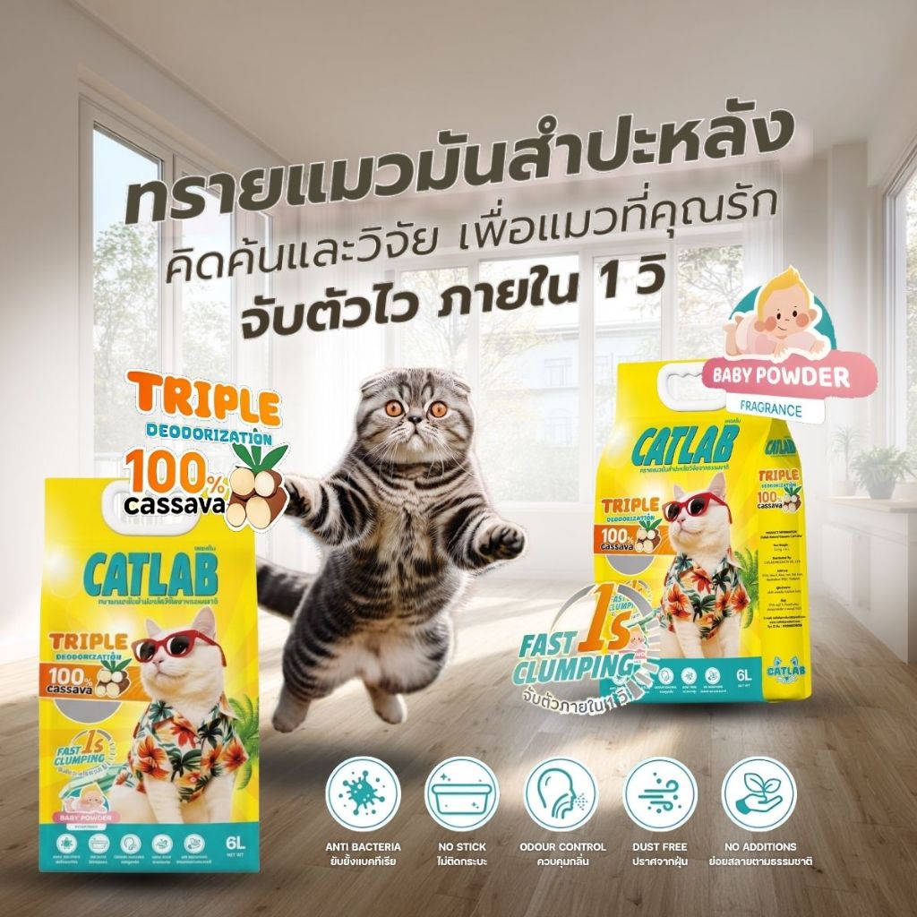 ทรายแมว CATLAB 6L มันสำปะหลังจากธรรมชาติ จับไว เก็บกลิ่นดี ไม่ติดกระบะ ไม่มีฝุ่น กลิ่นแป้งเด็ก