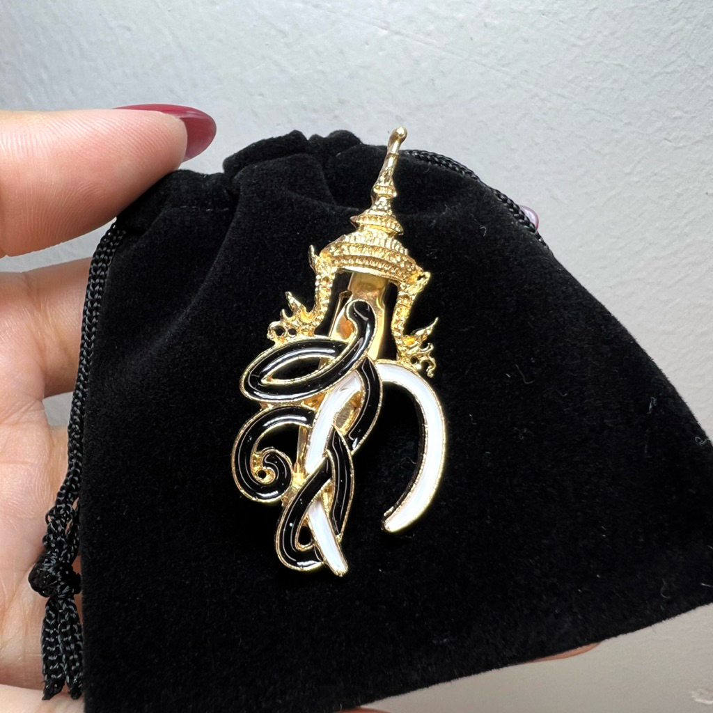 พร้อมส่งจากไทย (สีดำ-ขาว) เข็มกลัดไว้อาลัย สุดเรียบหรู (พร้อมถุง กำมะหยี่)