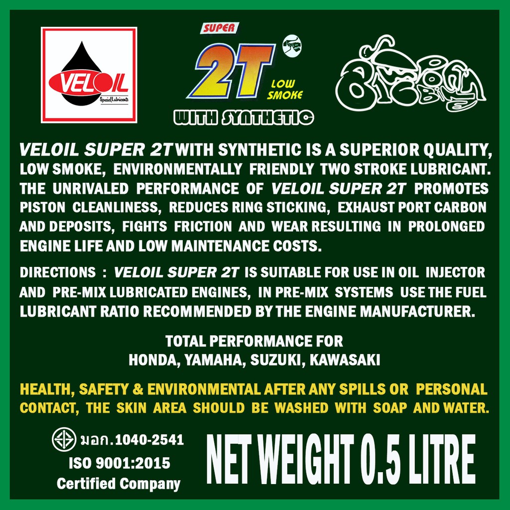 น้ำมันเครื่องเวลลอย ซุปเปอร์ ทูที (ออโต้ลูป) Veloil 2T Low Smoke ขนาด 0.5 L