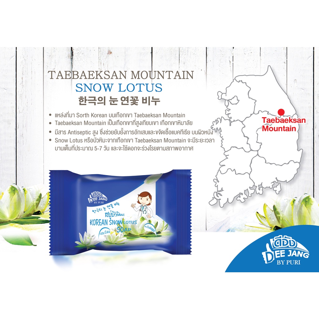 สบู่ดีจัง Deejang Soap สบู่สมุนไพร บัวหิมะ (แพ็ค3) สูตรลับเกาหลี หอมสดชื่น ลดสิวอักเสบ หน้าขาวใส เนียนนุ่ม (สบู่ไหมทอง)