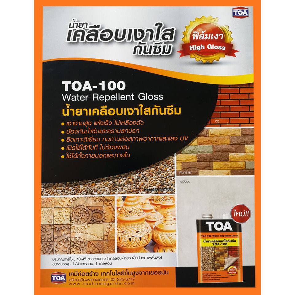 น้ำยาเคลือบเงาใสกันซึม TOA 100 #GLOSS น้ำยาเคลือบปูนเปลือย Water Repellent Gloss (1/4กล. , 0.946ลิตร) น้ำยาเคลือบ a-100
