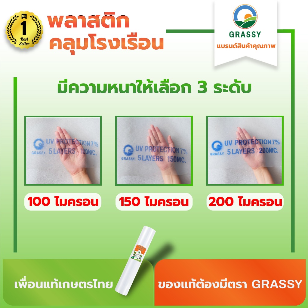 GRASSY พลาสติกคลุมโรงเรือน 4 ความหนา 100,150,200 ไมครอน UV7% 5 Layers